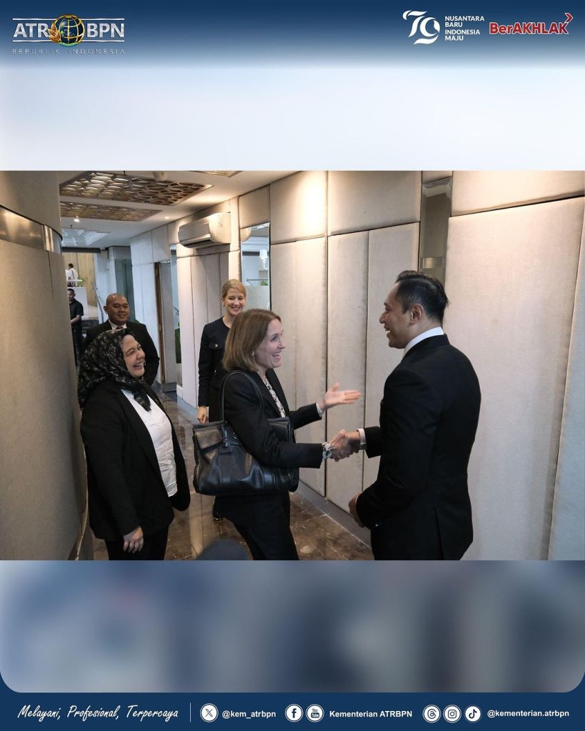 Hadir dalam pertemuan ini, Sekretaris Jenderal Kementerian ATR/BPN, Suyus Windayana; Staf Khusus Bidang Manajemen Internal, Agust Jovan Latuconsina; dan Tenaga Ahli Bidang Manajemen Internal, Mira Permatasari.