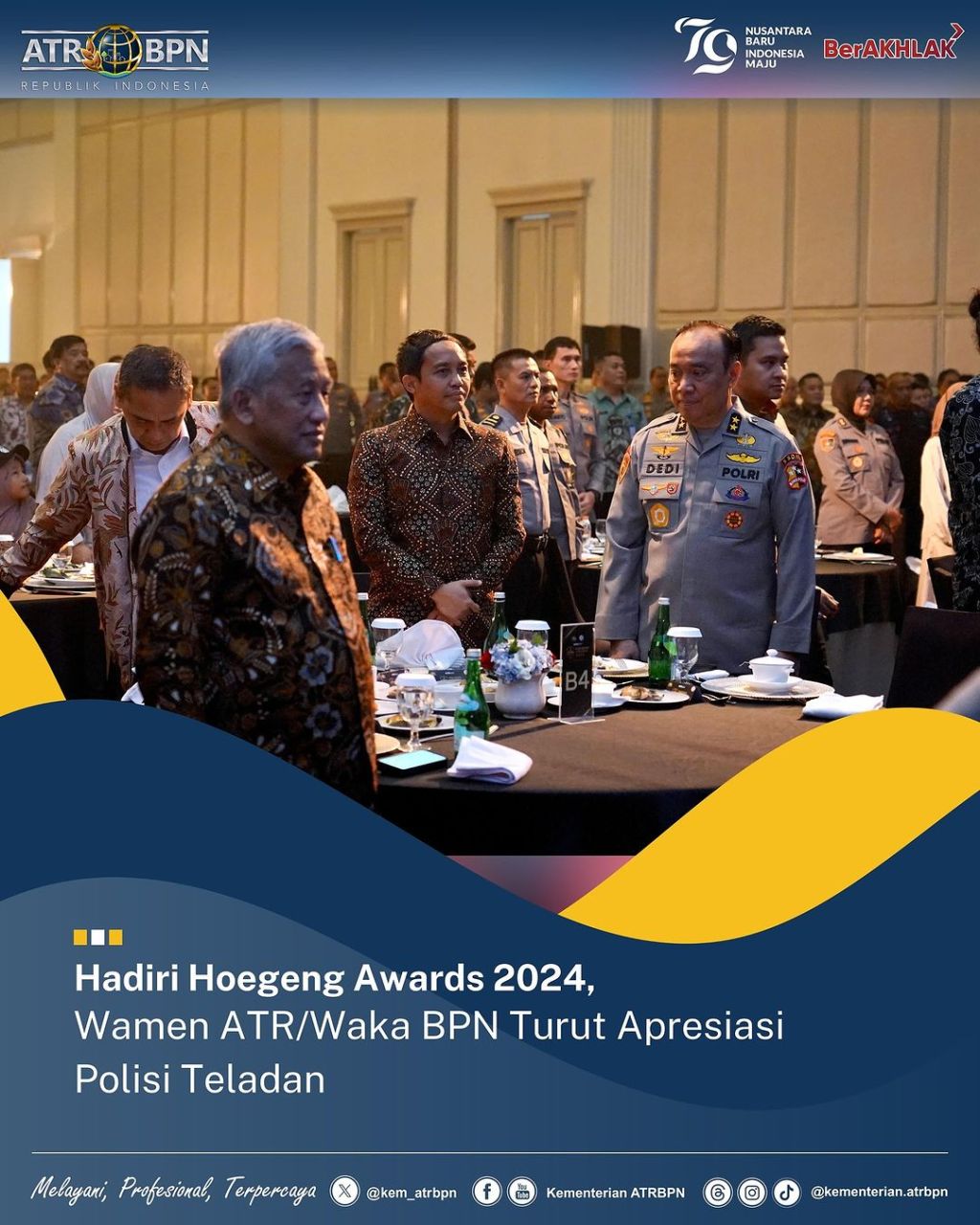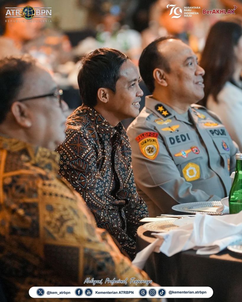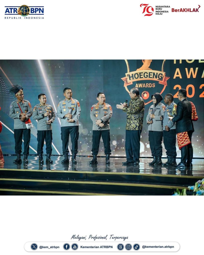 Wakil Menteri Agraria dan Tata Ruang/Wakil Kepala Badan Pertanahan Nasional (Wamen ATR/Waka BPN), Raja Juli Antoni mengungkapkan apresiasinya terhadap Polisi Teladan yang diberikan penghargaan dalam Penganugerahan Hoegeng Awards 2024, di The Tribrata Darmawangsa, Jakarta pada Jumat (12/07/2024). Ia menilai kinerja para polisi tersebut sangat menyentuh hati.