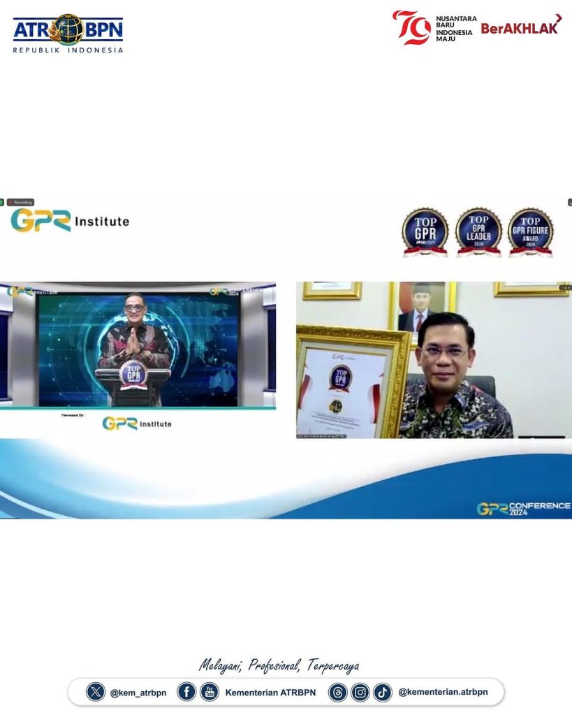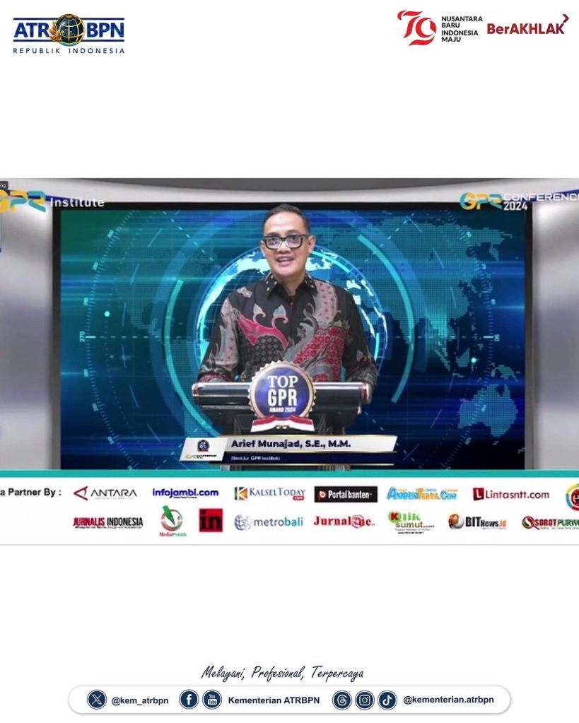 Kementerian Agraria dan Tata Ruang/Badan Pertanahan Nasional (ATR/BPN) menerima penghargaan Top GPR atau Government Public Relations Award 2024 dengan kategori “Special Achievement for Kementerian”. Penghargaan tersebut diberikan atas kinerja kehumasan yang telah berhasil mengelola digital komunikasi publik, di antaranya dengan memublikasikan program dan pelayanan yang ada di Kementerian ATR/BPN.