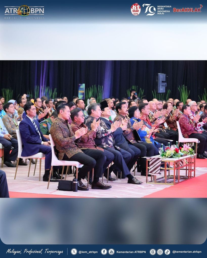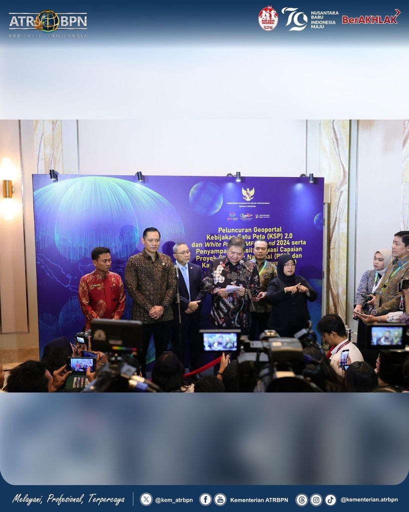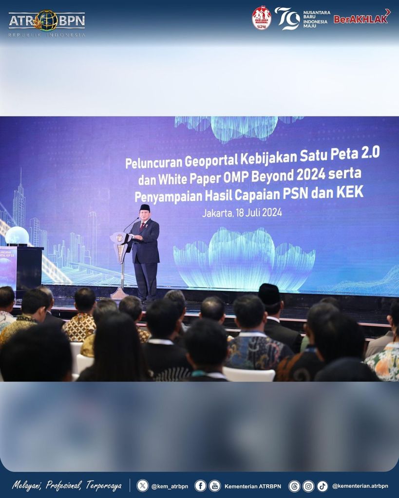 Menteri Agraria dan Tata Ruang/Kepala Badan Pertanahan Nasional (ATR/BPN), Agus Harimurti Yudhoyono (AHY) mendampingi Presiden Terpilih sekaligus Menteri Pertahanan, Prabowo Subianto dalam Peluncuran Geoportal Kebijakan Satu Peta (KSP) 2.0 dan penyerahan White Paper One Map Policy Beyond 2024 pada Kamis (18/07/2024). Prabowo Subianto dalam hal ini hadir mewakili Presiden Republik Indonesia, Joko Widodo.