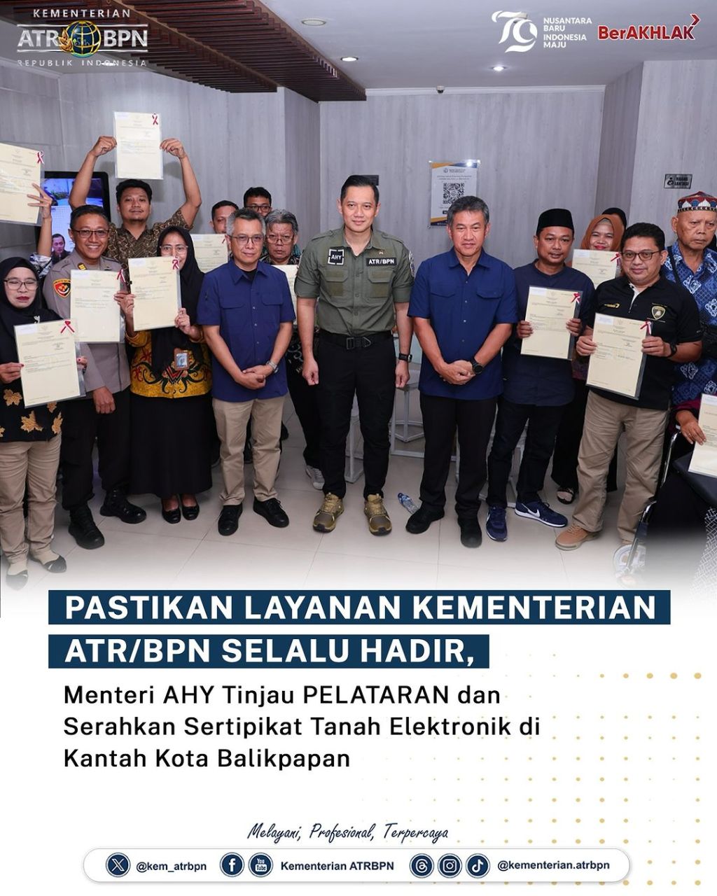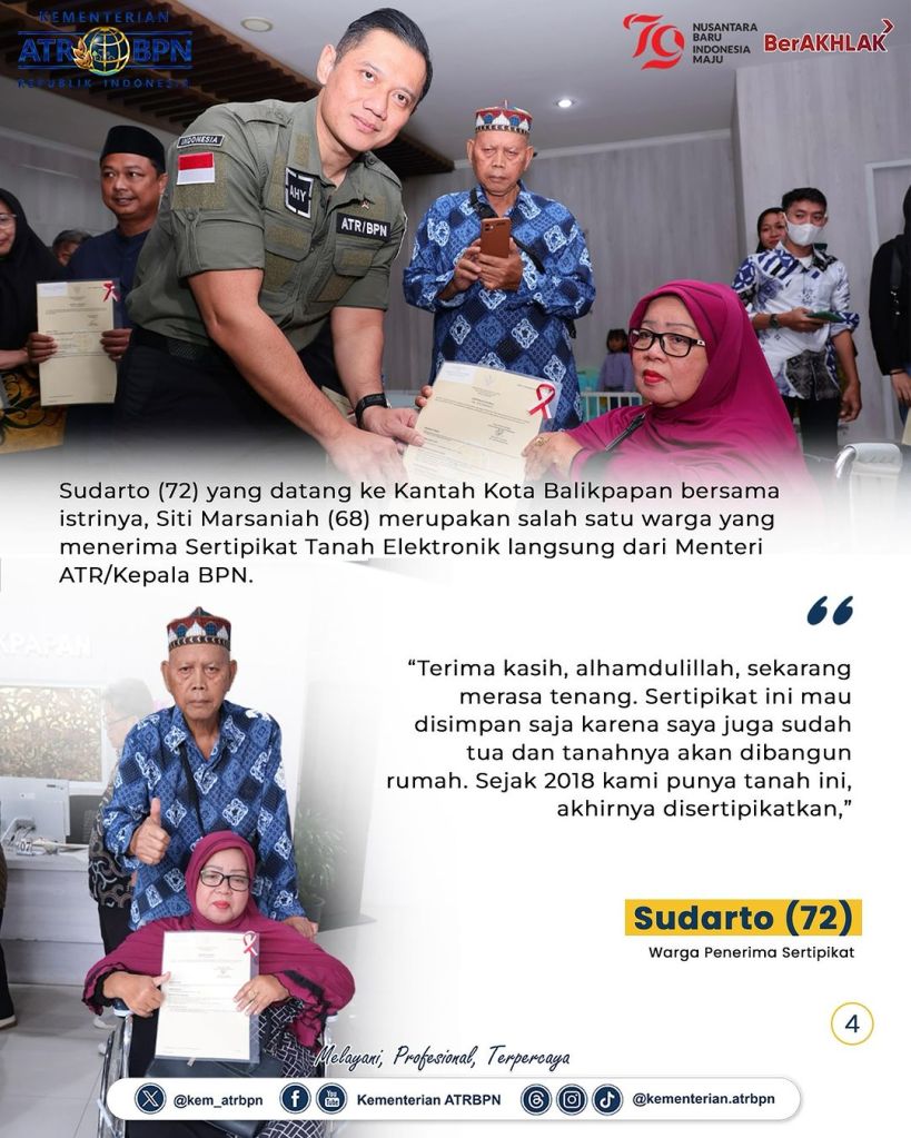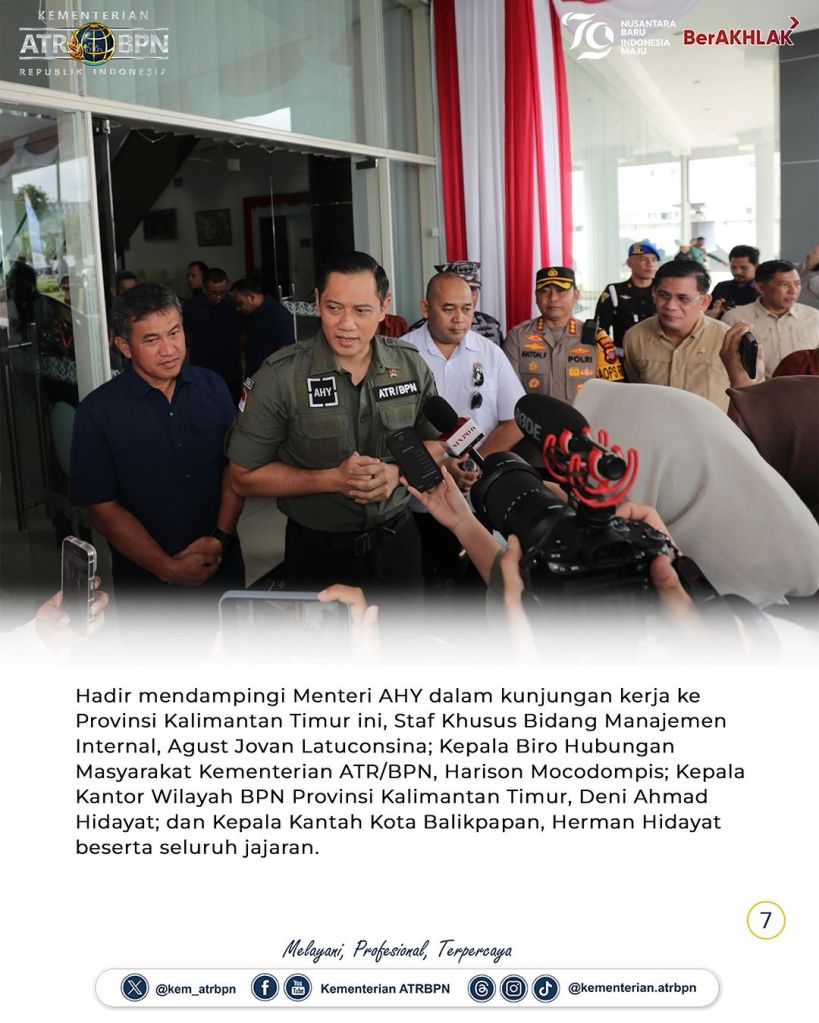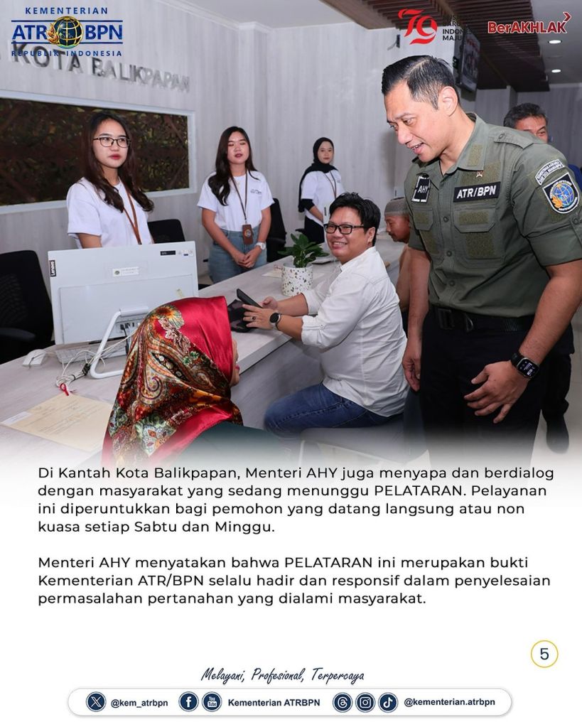 Menteri Agraria dan Tata Ruang/Kepala Badan Pertanahan Nasional (ATR/BPN), Agus Harimurti Yudhoyono (AHY) tiba di Kota Balikpapan, Provinsi Kalimantan Timur, Minggu (11/08/2024). Dalam kunjungan kerja ini, ia akan melakukan sejumlah agenda, mulai dari meninjau Pelayanan Tanah Akhir Pekan (PELATARAN) hingga mengikuti Sidang Kabinet Paripurna di Ibu Kota Nusantara (IKN) pada Senin (12/08/2024).