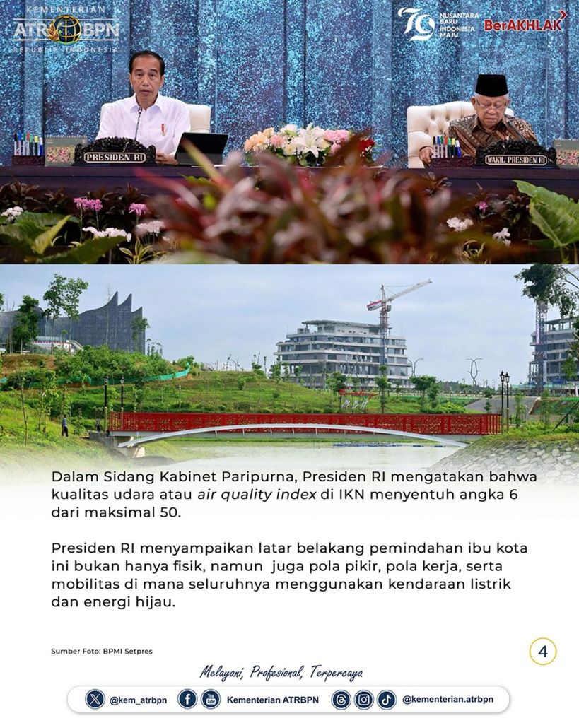 Pada kesempatan tersebut, Presiden Joko Widodo mengatakan bahwa ia ingin semua jajarannya merasakan udara pagi di IKN yang bersih dan sehat. Presiden menyebut, kualitas udara (air quality index) di IKN saat ini cukup rendah, yaitu di angka 6 dari maksimal 50.