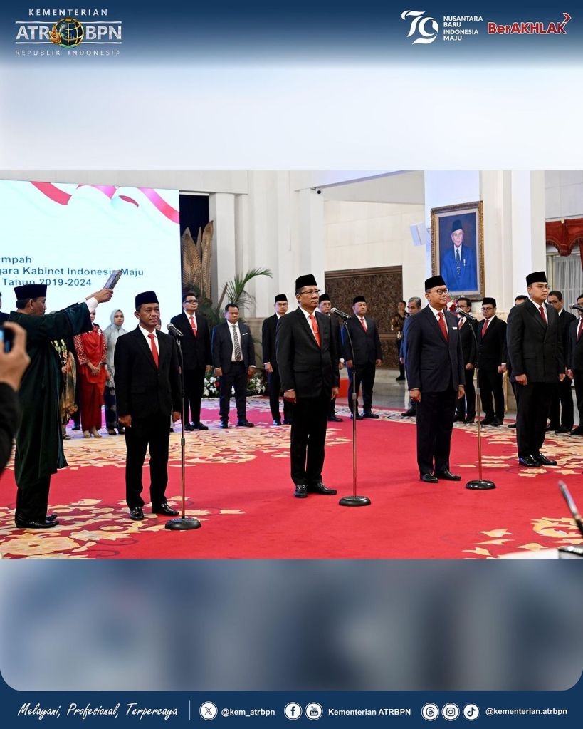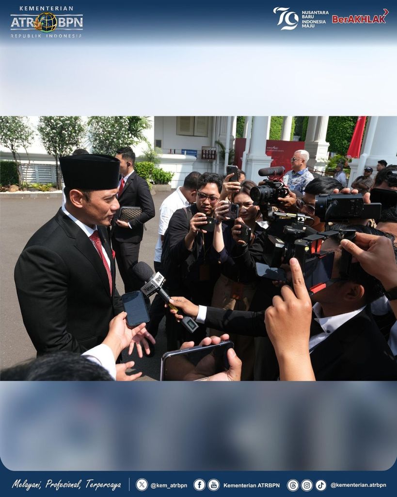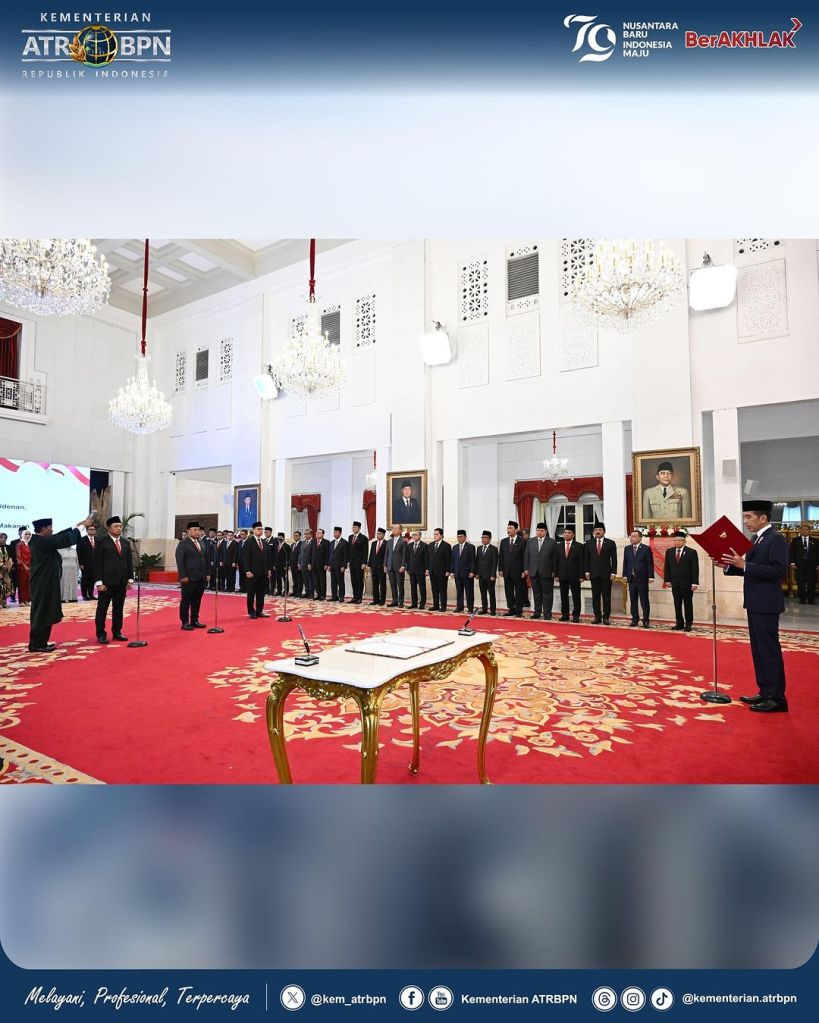 Menteri Agraria dan Tata Ruang/Kepala Badan Pertanahan Nasional (ATR/BPN), Agus Harimurti Yudhoyono (AHY) menghadiri Pelantikan Pejabat Negara Republik Indonesia, di Istana Negara Jakarta pada Senin (19/08/2024). Kepada para pejabat yang mendapat amanah baru ia ucapkan selamat dan berharap transisi kepemimpinan pemerintahan akan berjalan dengan baik.