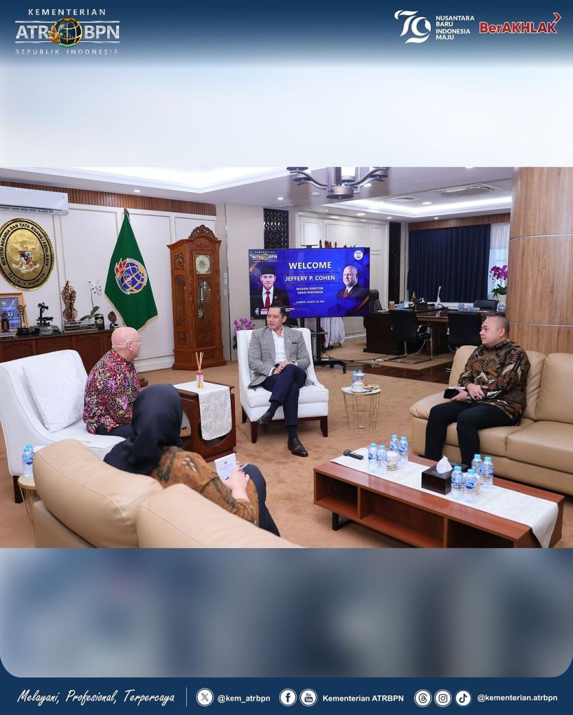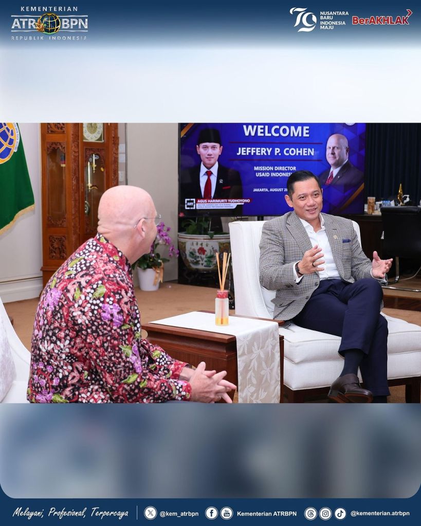 Menteri Agraria dan Tata Ruang/Kepala Badan Pertanahan Nasional (ATR/BPN), Agus Harimurti Yudhoyono (AHY) melakukan pertemuan dengan Mission Director of United States Agency for International Development (USAID) Indonesia, Jeffery P. Cohen. Pembahasan pertemuan ini berkisar seputar peluang kerja sama antara kedua negara, utamanya di bidang pertanahan dan tata ruang. Di mana hal ini juga sejalan dengan target kementerian untuk menyelesaikan target pendaftaran 126 juta bidang tanah di seluruh Indonesia.