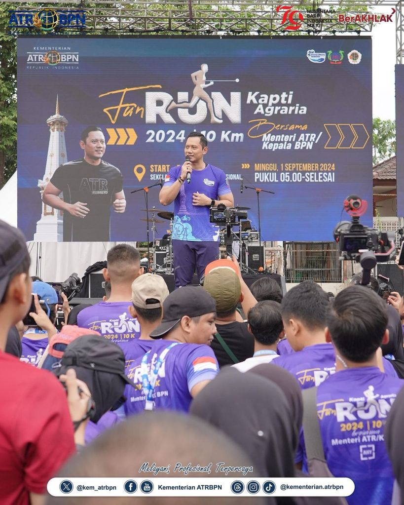 Menteri Agraria dan Tata Ruang/Kepala Badan Pertanahan Nasional (ATR/BPN), Agus Harimurti Yudhoyono (AHY) menyatakan bahwa sebanyak 117 juta bidang tanah telah berhasil didaftarkan dan yakin target program Pendaftaran Tanah Sistematis Lengkap (PTSL) akan tercapai tahun ini. Hal tersebut disampaikan usai kegiatan Fun Run KAPTI-Agraria, di Sekolah Tinggi Pertanahan Nasional (STPN) Yogyakarta, Kabupaten Sleman, Minggu (01/09/2024).