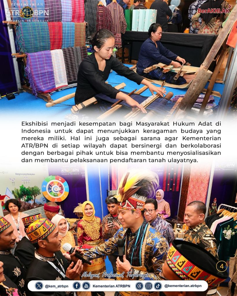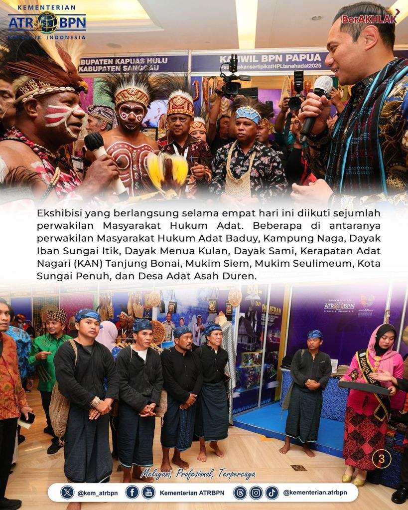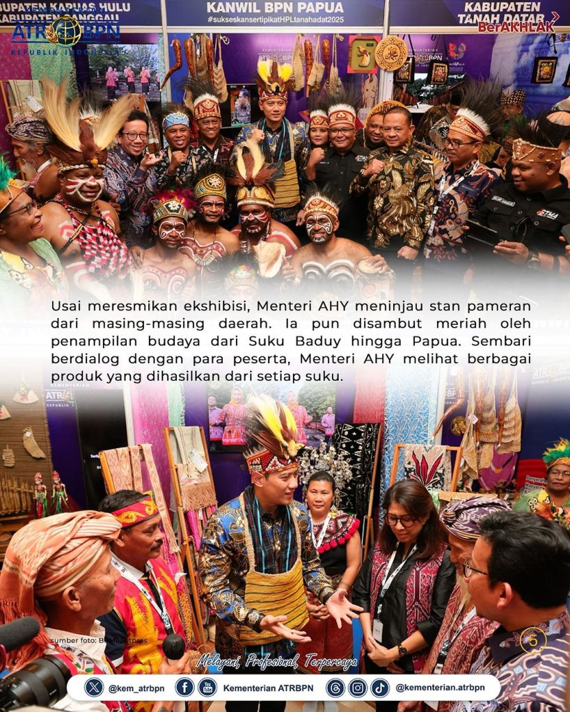 “Kita sama-sama melihat ekshibisi atau pameran dari stakeholders untuk menyatukan visi dan semangat kita menyukseskan program registrasi tanah ulayat yang ada di Indonesia dan juga di ASEAN countries,” kata Menteri AHY dalam sambutannya.