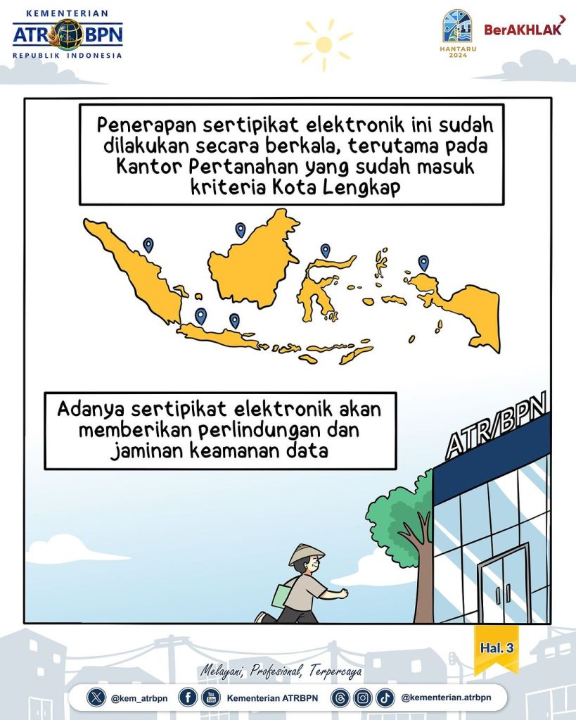 Sertipikat elektronik sudah mulai diterapkan berkala terutama di Kantor Pertanahan yang sudah masuk Kriteria Kota Lengkap.