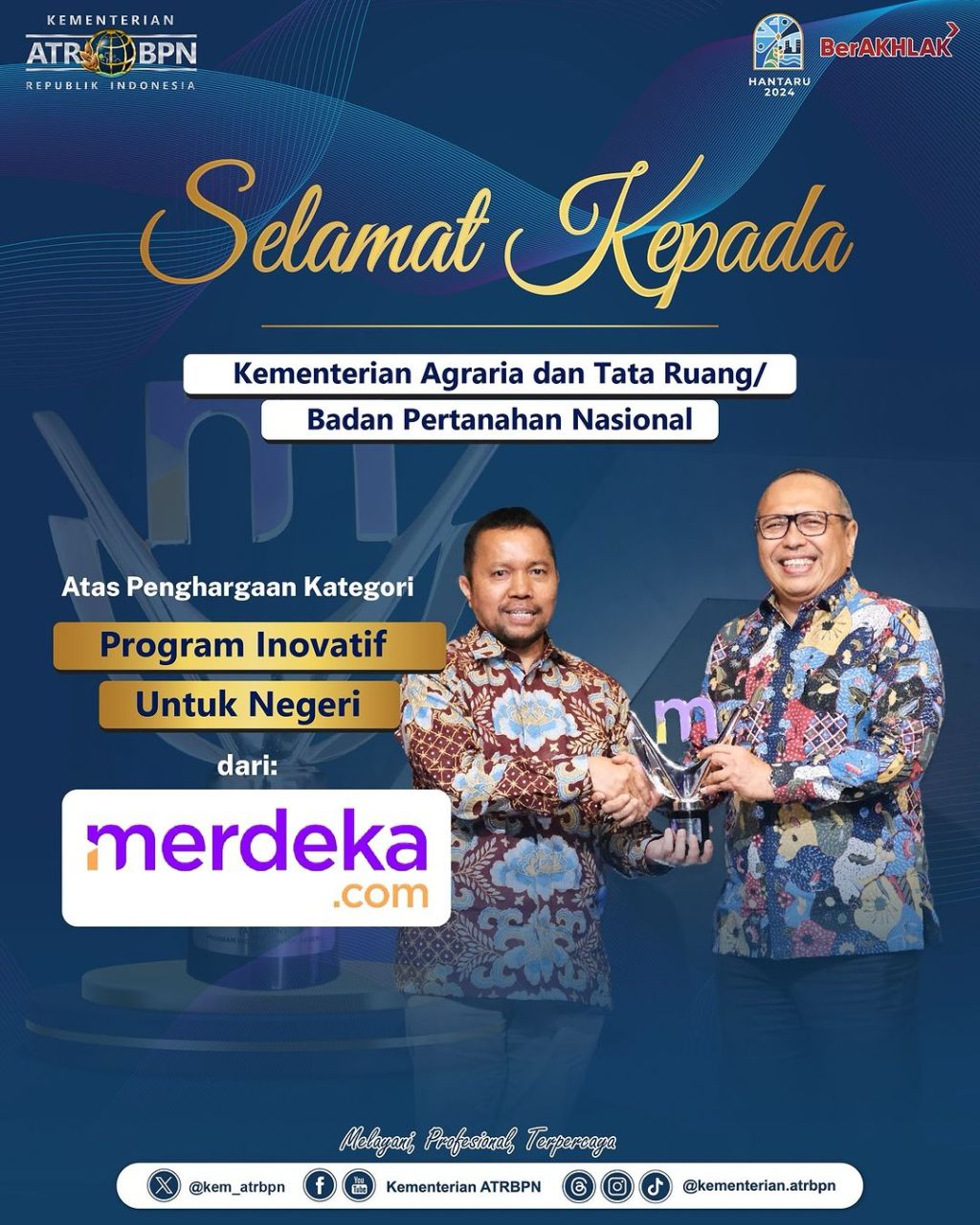 Halo #SobATRBPN, Kementerian ATR/BPN meraih penghargaan Merdeka Awards 2024 kategori Program Inovatif untuk Negeri oleh Merdeka.com