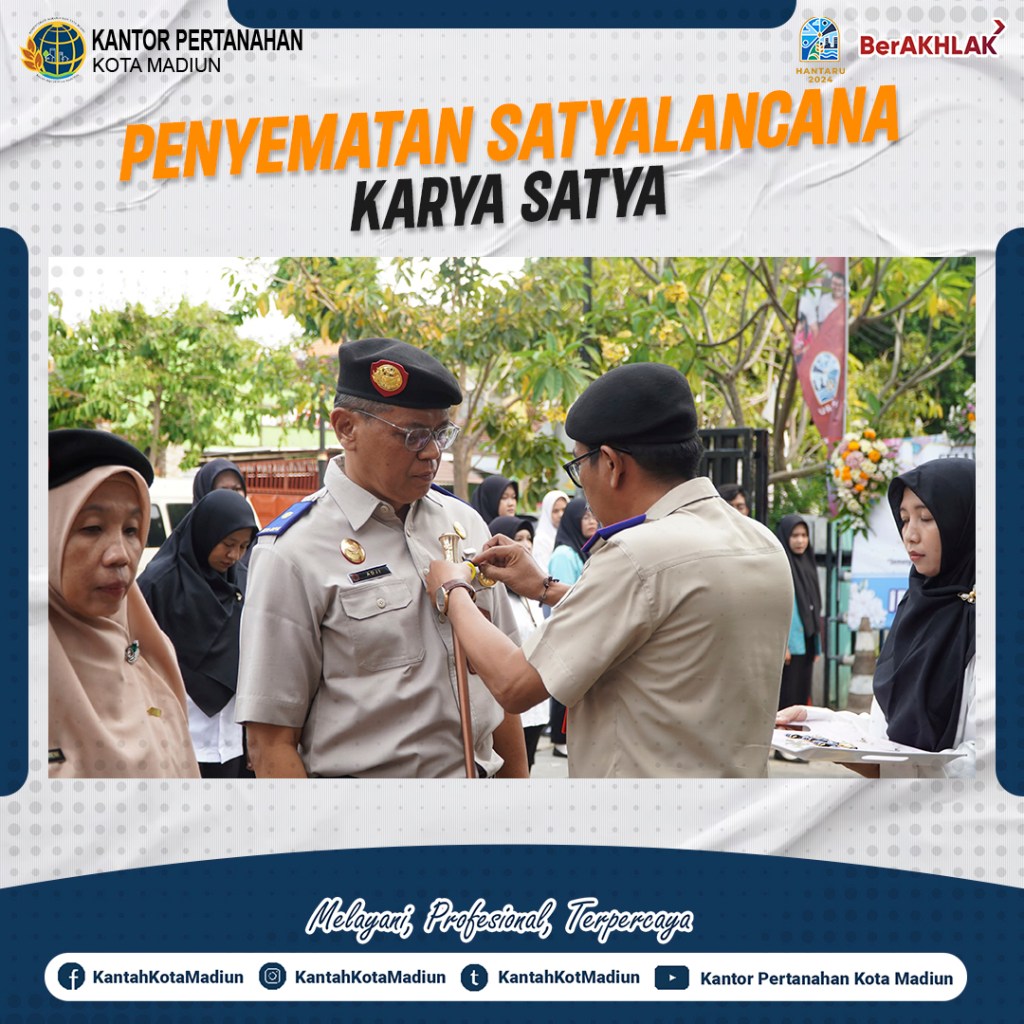 Halo #SobATRBPN, Hari ini Selasa (24/09/2024) Kepala Kantor Pertanahan Kota Madiun, Bapak Triawan Saleh, S.T., M.Si. selepas upacara melaksanakan Penyematan Tanda Kehormatan Satyalancana Karya Satya kepada Jajaran di Lingkungan Kantor Pertanahan Kota Madiun.