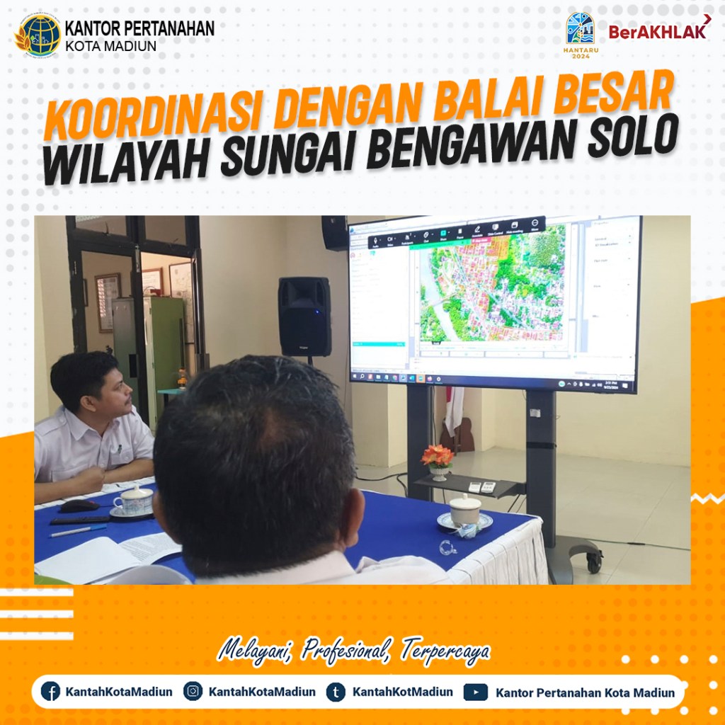 Halo #SobATRBPN, Hari ini Rabu (25/09/2024) Kantor Pertanahan Kota Madiun koordinasi dengan Balai Besar Wilayah Sungai (BBWS) Bengawan Solo.