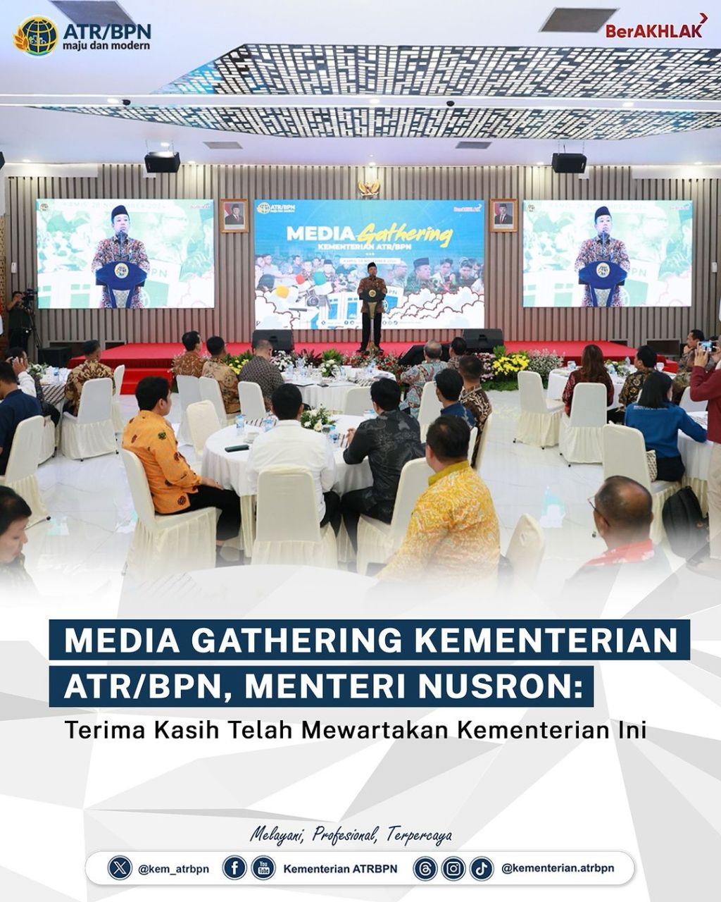 Kementerian Agraria dan Tata Ruang/Badan Pertanahan Nasional (ATR/BPN) mengadakan Media Gathering pada Kamis (28/11/2024) di Kantor Kementerian ATR/BPN, Jakarta. Dalam kesempatan ini, Menteri ATR/Kepala BPN, Nusron Wahid menyampaikan ucapan terima kasih kepada para jurnalis atas kolaborasi selama ini.
