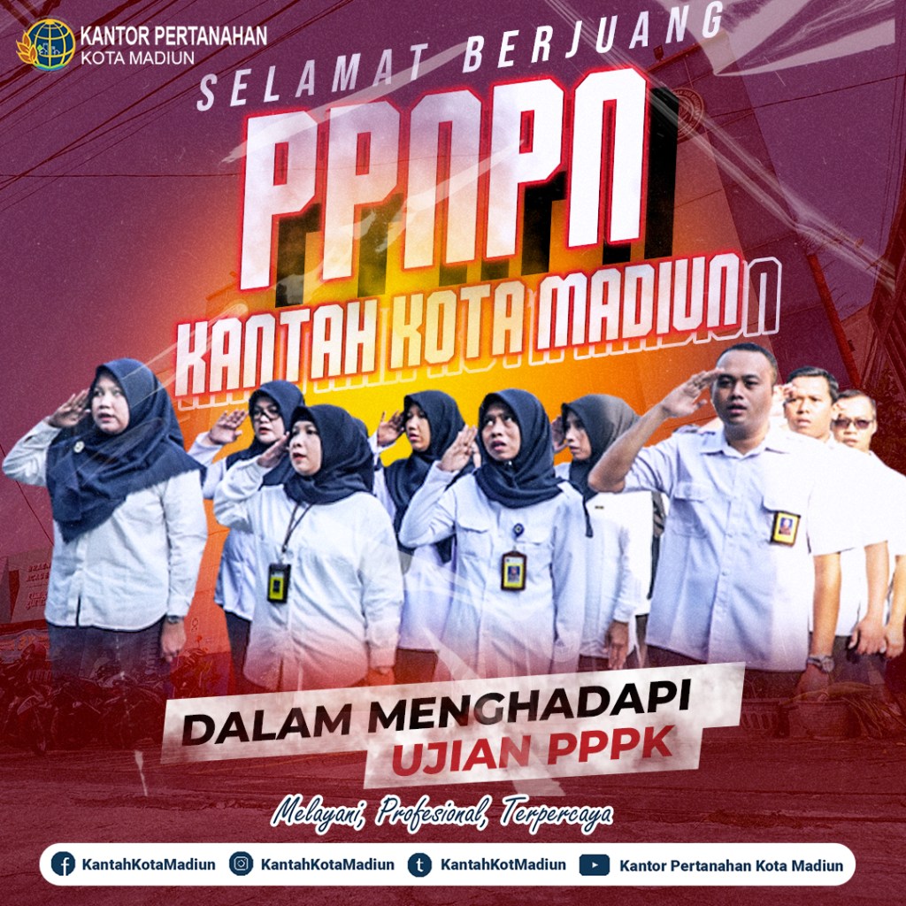Selamat berjuang Rekan-Rekan PPNPN Kantor Pertanahan Kota Madiun dalam tes seleksi PPPK tahun 2024. Persiapkan segalanya dengan sebaik-baiknya, dan jangan lupa untuk berdoa. Apapun hasilnya nanti, kalian telah membuktikan bahwa tekad dan perjuangan adalah jalan menuju kesuksesan.