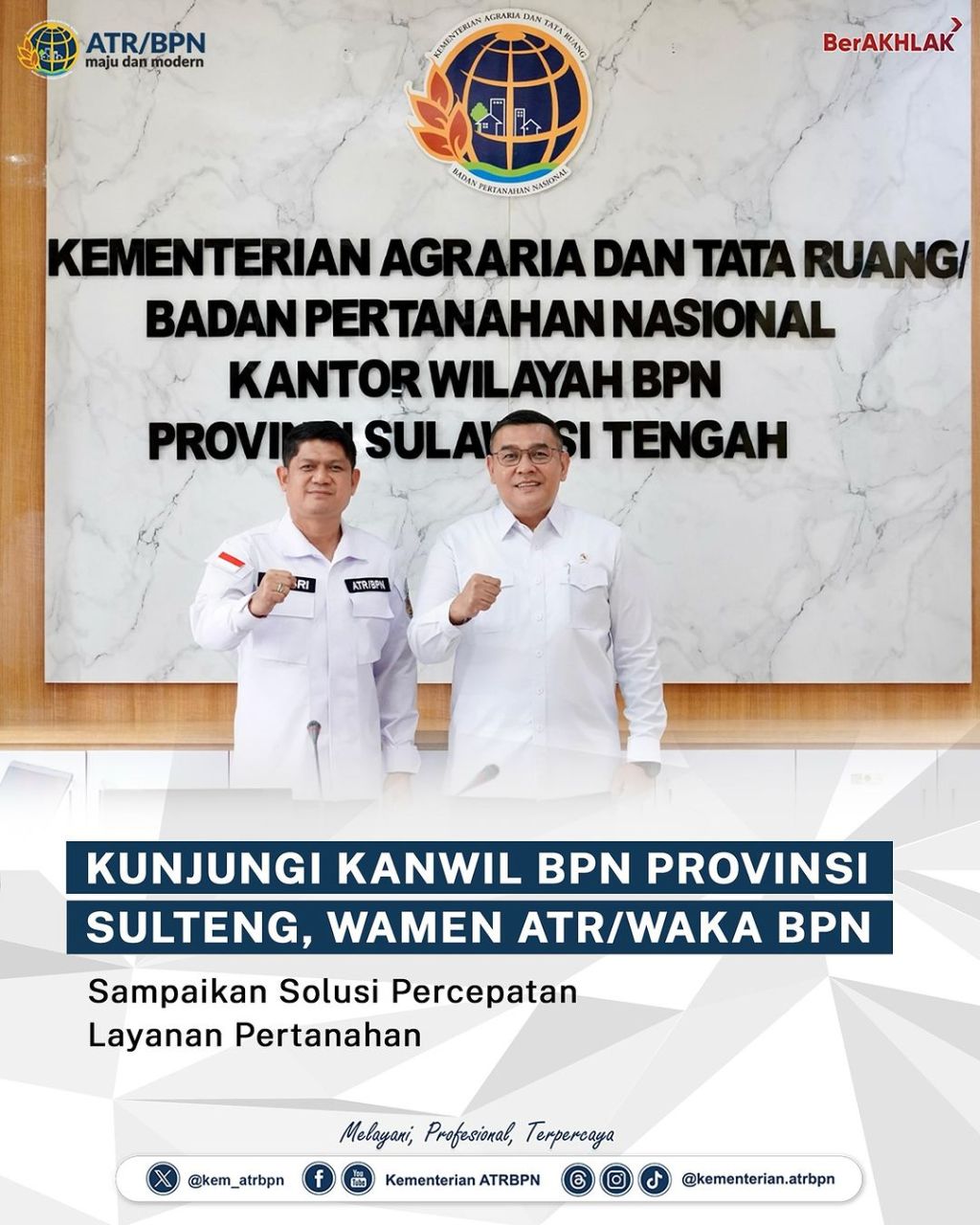 Wakil Menteri Agraria dan Tata Ruang/Wakil Kepala Badan Pertanahan Nasional (Wamen ATR/Waka BPN), Ossy Dermawan mengemukakan solusi dalam rangka percepatan layanan publik di lingkungan Kementerian ATR/BPN. Hal ini ia sampaikan ketika berkunjung ke Kantor Wilayah (Kanwil) BPN Provinsi Sulawesi Tengah (Sulteng), Kota Palu pada Rabu (04/12/2024).