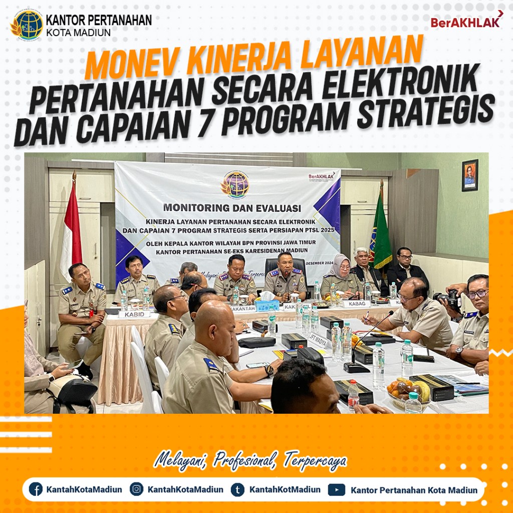 Halo #SobATRBPN, Hari ini Senin (16/12/2024) Kantor Pertanahan Kota Madiun mengikuti Rapat Monitoring dan Evaluasi Kinerja Layanan Pertanahan Secara Elektronik dan Capaian 7 Program Strategis Serta Persiapan PTSL Tahun Anggaran 2025 oleh Kepala Kantor Wilayah Badan Pertanahan Nasional (BPN) Provinsi Jawa Timur, Bapak Lampri A.Ptnh., S.H., M.H.