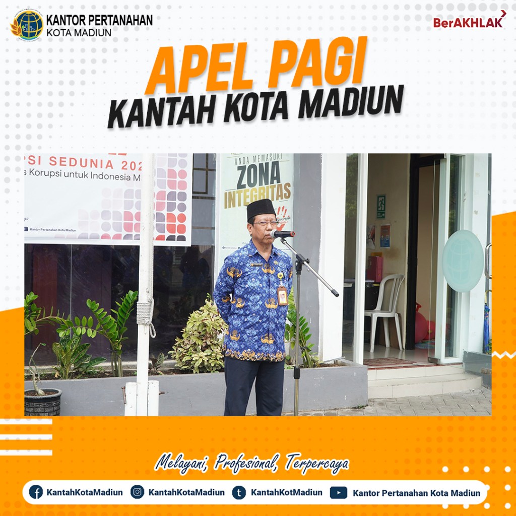 Halo #SobATRBPN, Hari ini Selasa (17/12/2024) Kantor Pertanahan Kota Madiun melaksanakan Apel Pagi yang bertempat di Halaman Depan Kantor Pertanahan Kota Madiun. Yang bertindak sebagai Pembina Upacara, Kepala Seksi Pengadaan dan Pengembangan Tanah, Bapak Geger Teguh Juwono, A.Ptnh. dan diikuti oleh seluruh Pejabat Pengawas dan Jajaran Kantor Pertanahan Kota Madiun.