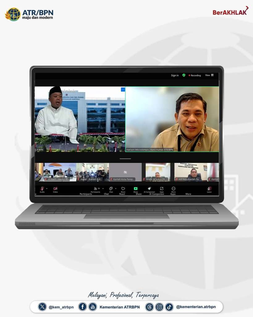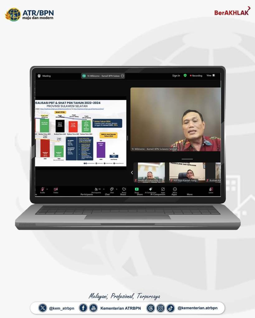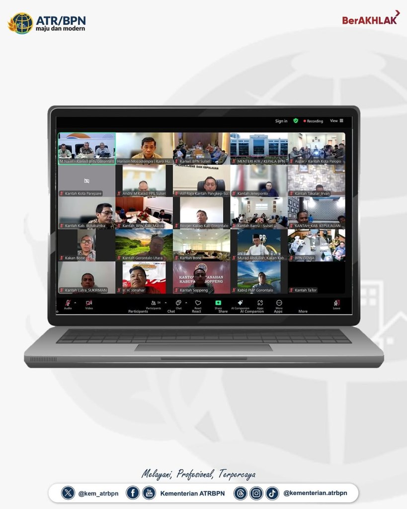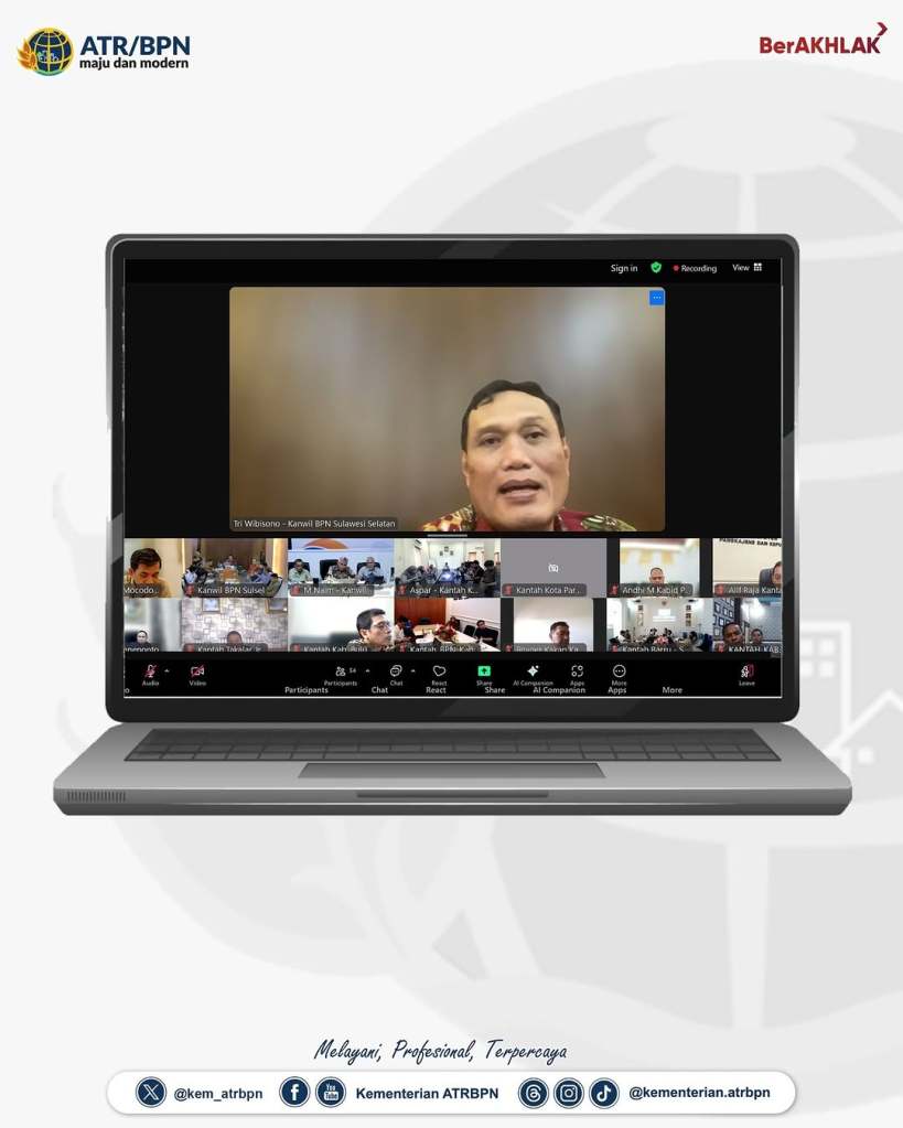 Pada pertemuan yang dimoderatori oleh Kepala Biro Hubungan Masyarakat, Harison Mocodompis tersebut, disampaikan pula capaian kinerja oleh Kepala Kanwil BPN Provinsi Sulawesi Selatan, Tri Wibisono dan Kepala kanwil BPN Provinsi Gorontalo, Muhammad Naim. Hadir mendengarkan arahan, seluruh kepala kantor Pertanahan Kota/Kabupaten di Provinsi Sulawesi Selatan dan Provinsi Gorontalo. (GE/RT)