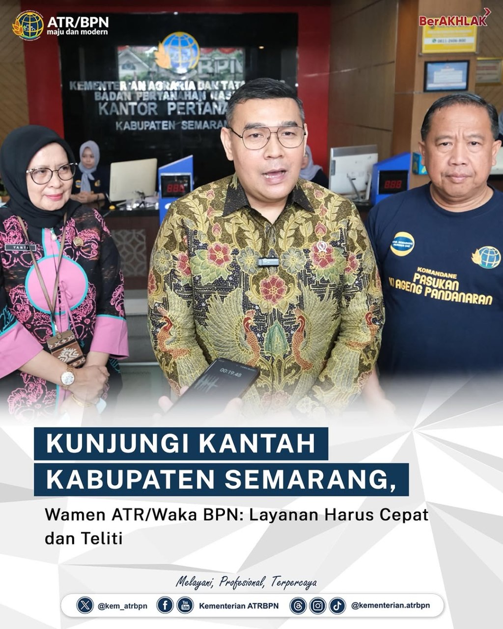 Sebagai salah satu instansi pemerintah yang memberikan layanan kepada masyarakat, Kementerian Agraria dan Tata Ruang/Badan Pertanahan Nasional (ATR/BPN) diharapkan mampu memberikan kemudahan yang optimal. Wakil Menteri ATR/Wakil Kepala BPN, Ossy Dermawan, menegaskan bahwa jajaran kementerian harus mampu memberikan layanan yang cepat, teliti, dan akurat.