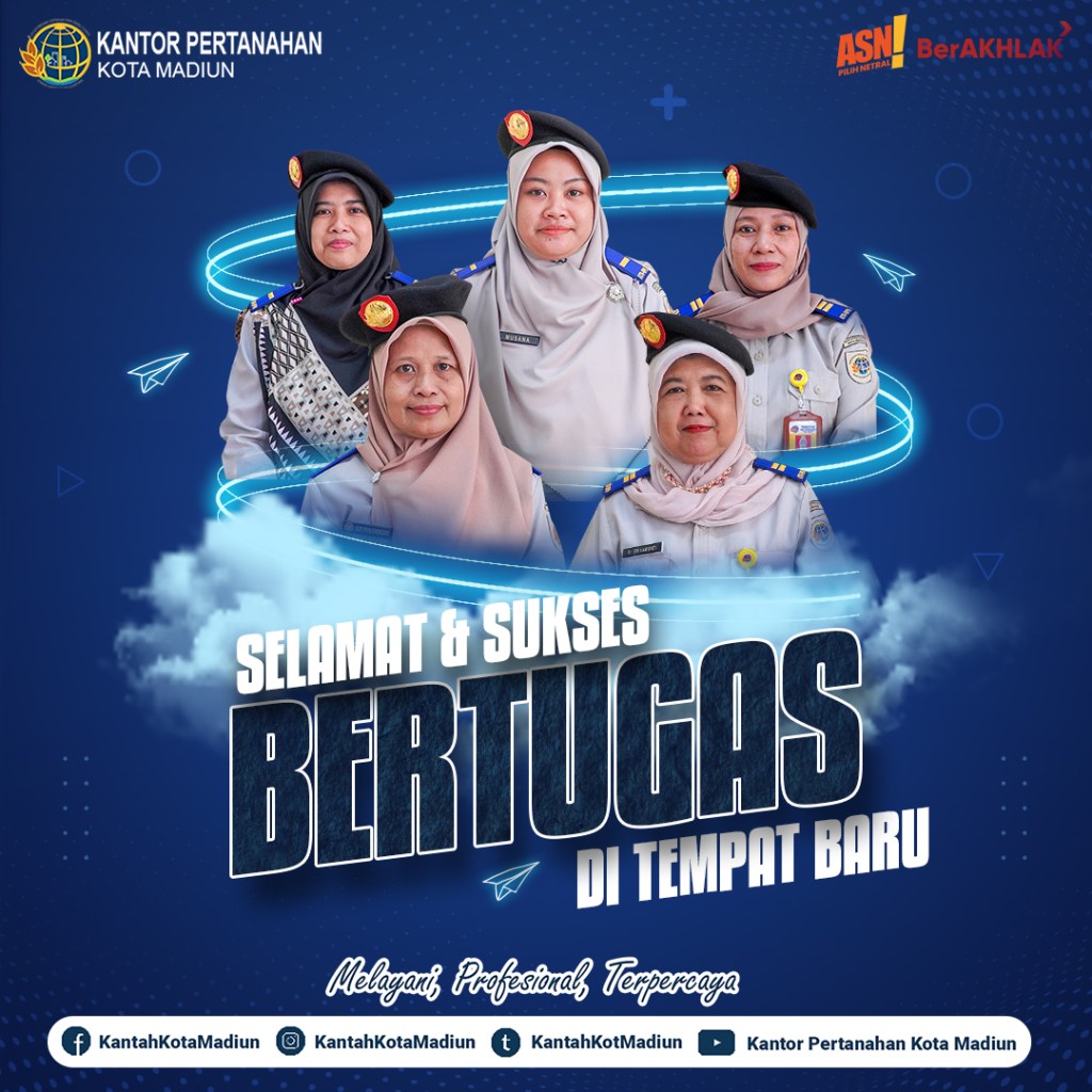 Segenap Keluarga Besar Kantor Pertanahan Kota Madiun mengucapkan terima kasih atas dedikasi dan pengabdian yang diberikan selama bertugas pada Kantor Pertanahan Kota Madiun.