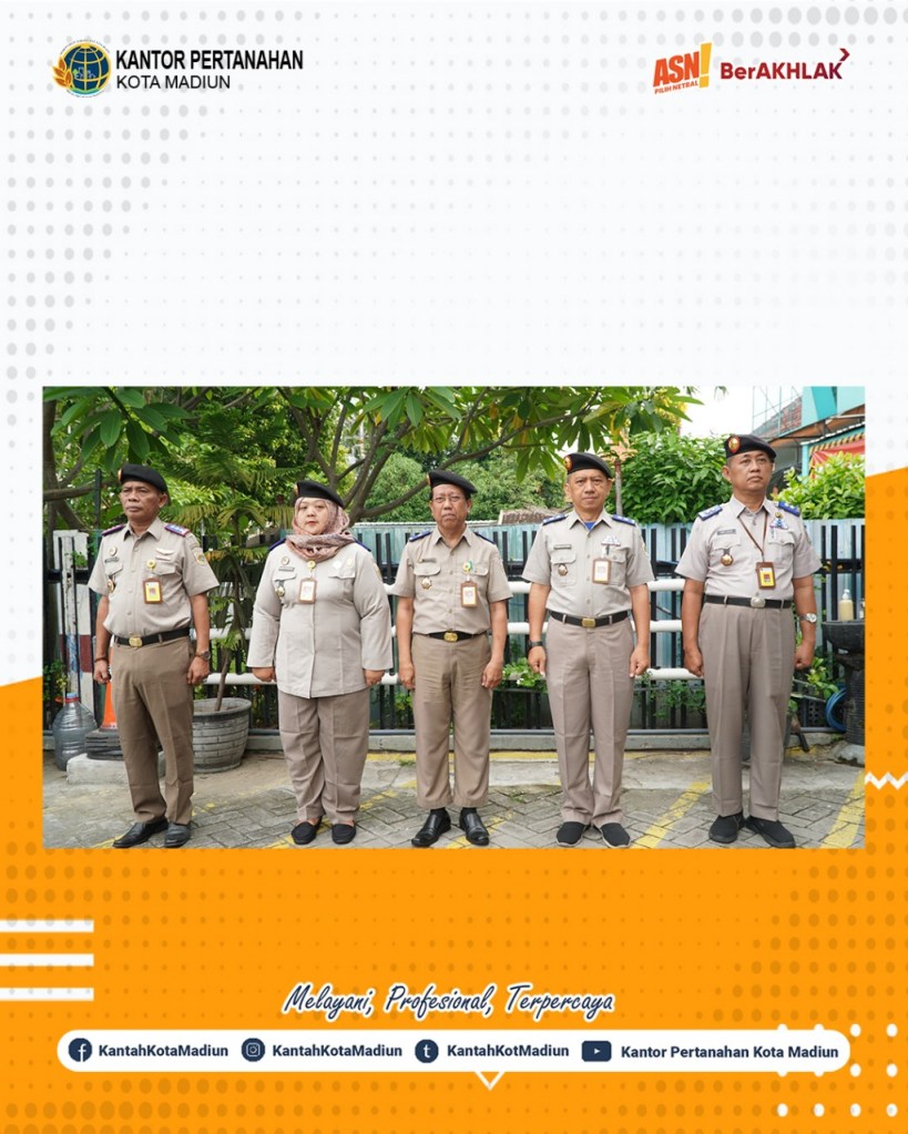 Halo #SobATRBPN, Hari ini Selasa (04/02/2025) Kantor Pertanahan Kota Madiun melaksanakan Apel Pagi yang bertempat di Halaman Depan Kantor Pertanahan Kota Madiun. Yang bertindak sebagai Pembina Upacara, Kepala Seksi Survei dan Pengukuran, Bapak Agus Cahyadi, S.ST. dan diikuti oleh seluruh Pejabat Pengawas dan Jajaran Kantor Pertanahan Kota Madiun.