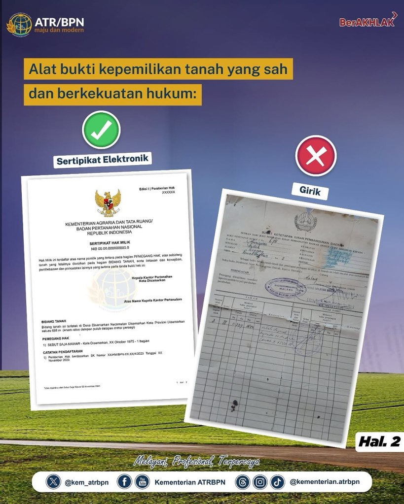 Halo #SobATRBPN, simak yuk penjelasan seputar girik dan alat bukti bekas hak milik adat lainnya.