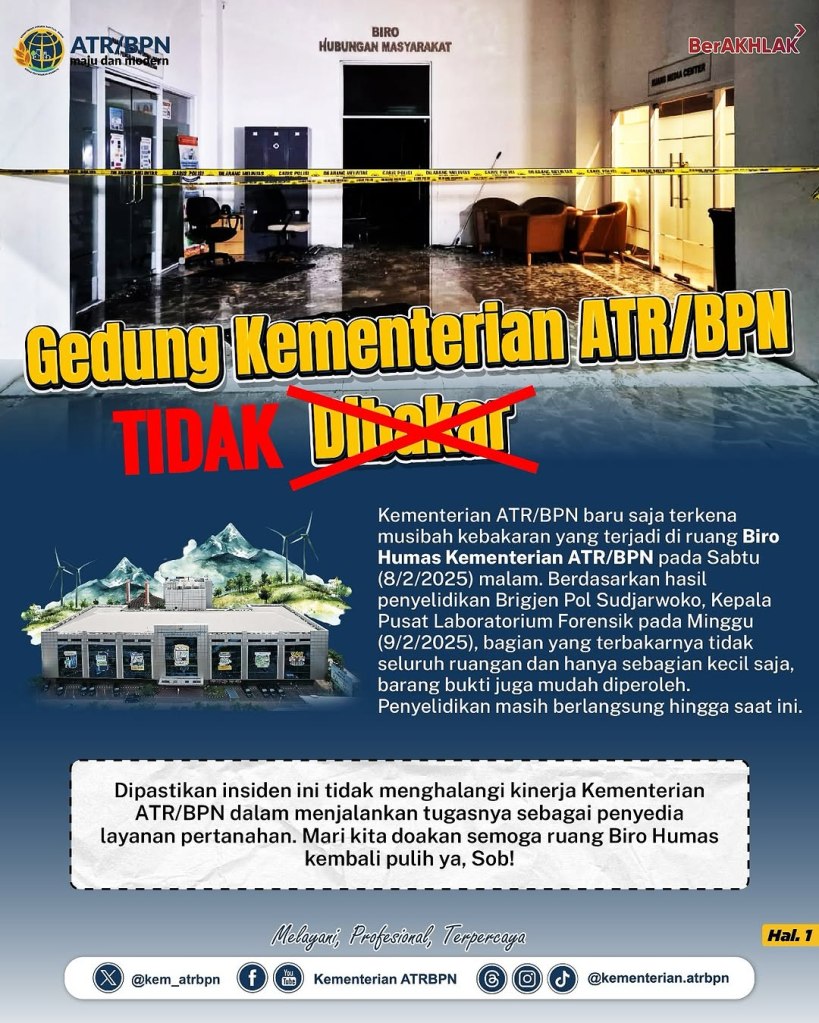 Halo #SobATRBPN, seperti yang kita ketahui bersama bahwa Kementerian ATR/BPN baru saja terkena musibah kebakaran di ruang Biro Humas.