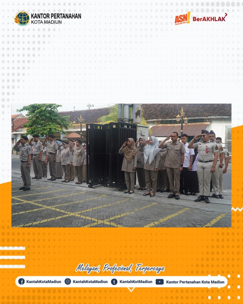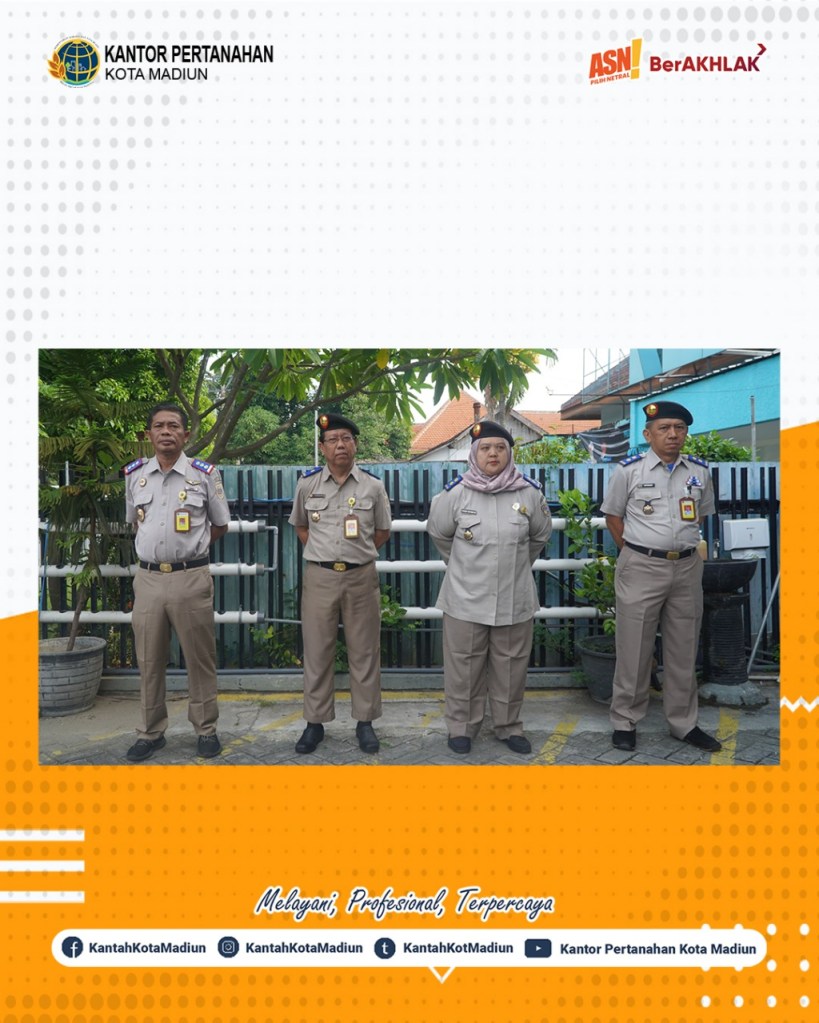 Halo #SobATRBPN, Hari ini Selasa (18/02/2025) Kantor Pertanahan Kota Madiun melaksanakan Apel Pagi yang bertempat di Halaman Depan Kantor Pertanahan Kota Madiun. Yang bertindak sebagai Pembina Upacara, Kepala Seksi Penataan dan Pemberdayaan, Bapak Dwi Joko Susilo, A.Ptnh., M.M. dan diikuti oleh seluruh Pejabat Pengawas dan Jajaran Kantor Pertanahan Kota Madiun.