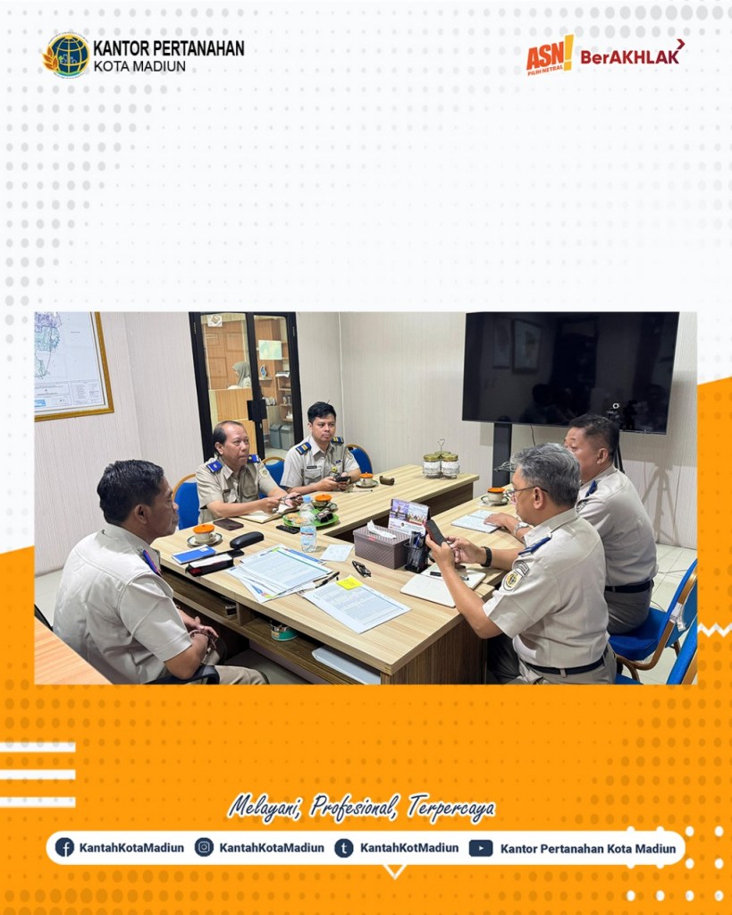 Halo #SobATRBPN, Hari ini Selasa (18/02/2025) Kantor Pertanahan Kota Madiun melaksanakan rapat percepatan pensertipikatan tanah wakaf menindaklanjuti arahan Bapak Menteri ATR/BPN dan di pertegas oleh Bapak Kepala Kantor Wilayah BPN Provinsi Jawa Timur.