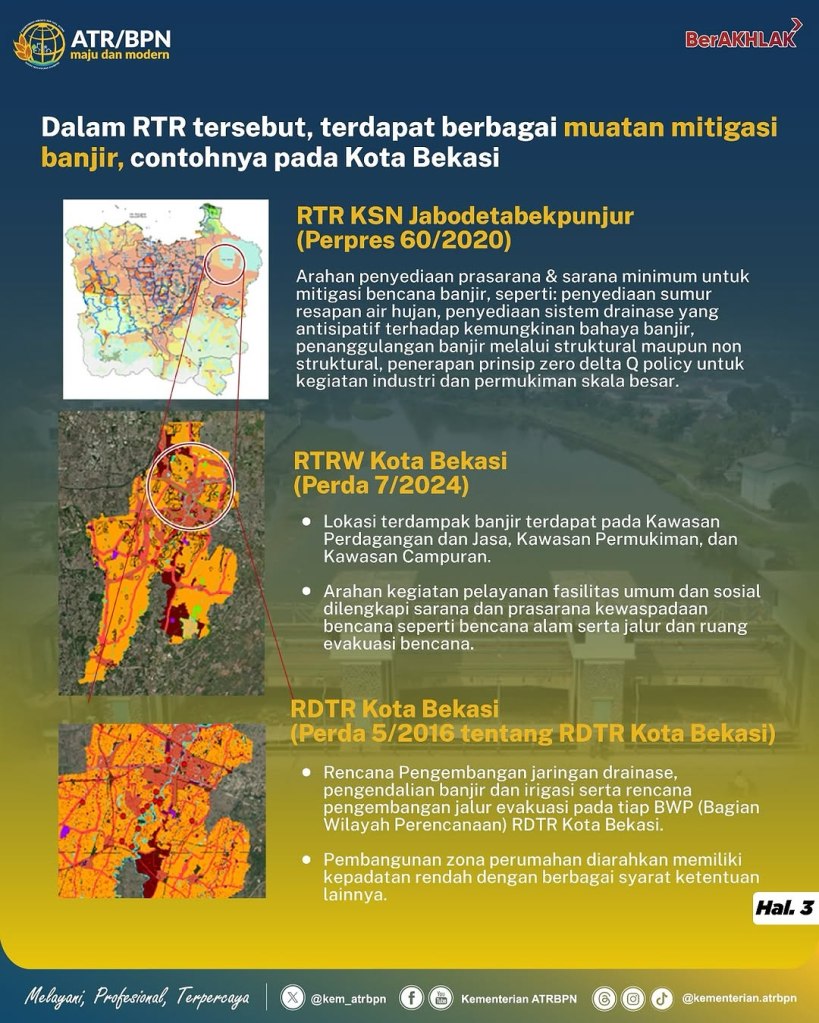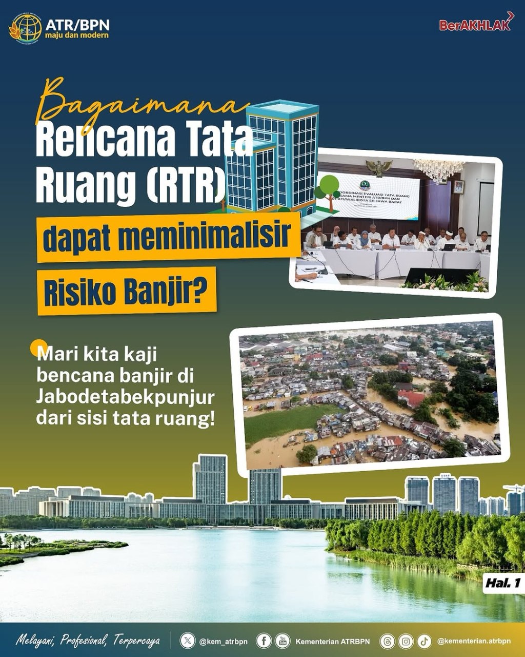 Halo #SobATRBPN, banjir merupakan salah satu bencana alam yang terjadi saat musim hujan berlangsung, untuk itu Kementerian ATR/BPN juga berkomitmen membantu menuntaskan persoalan banjir melalui Rencana Tata Ruang (RTR).