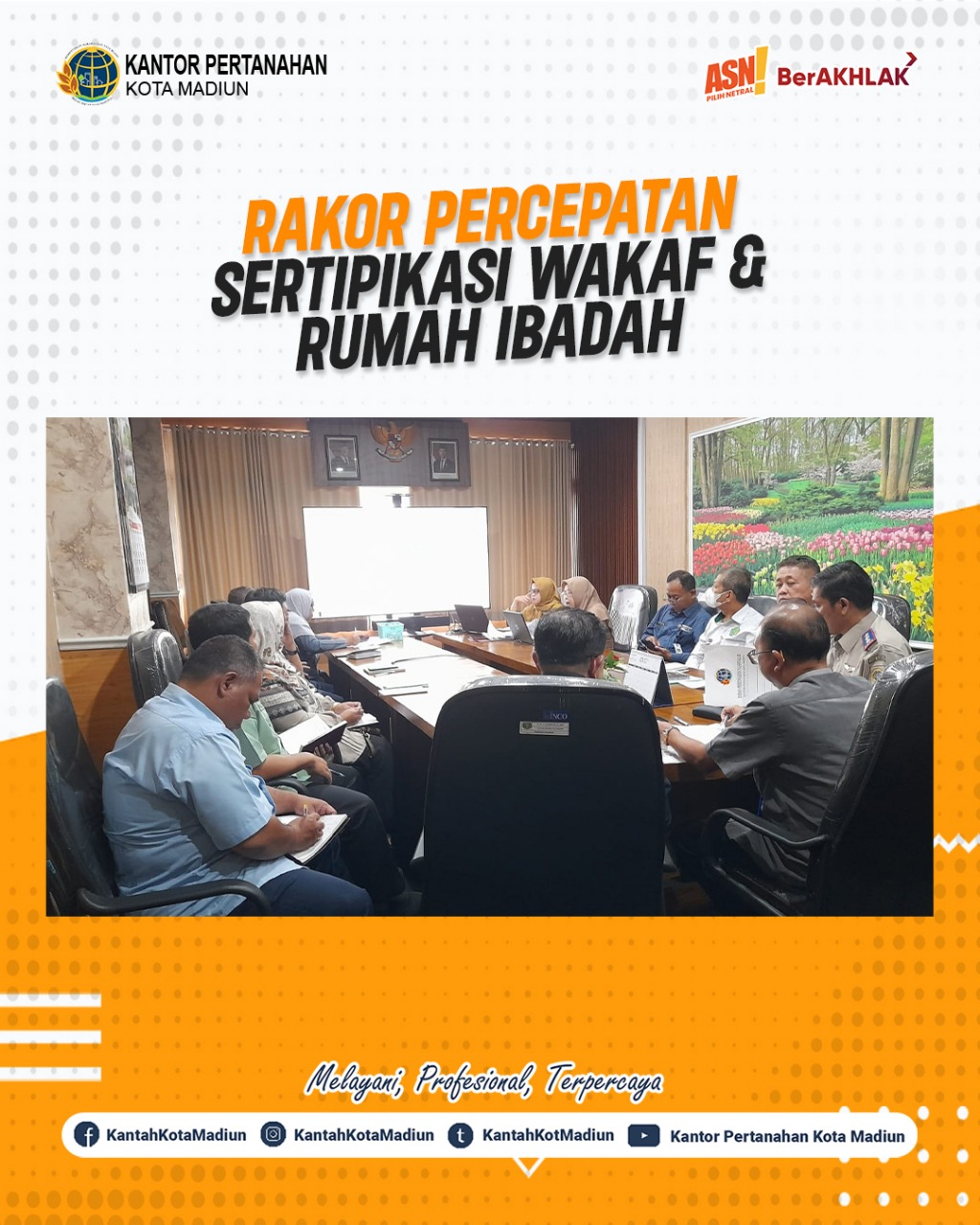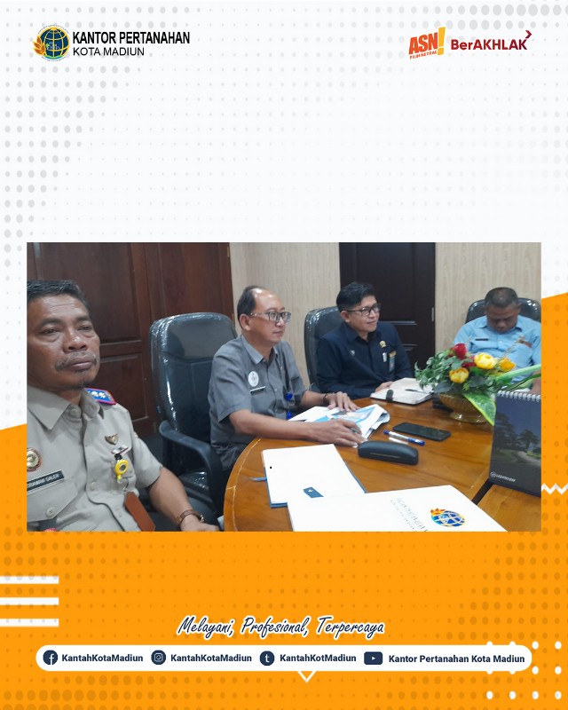 Halo #SobATRBPN, Selasa (19/03/2025) Kantor Pertanahan Kota Madiun mengikuti Rapat Koordinasi Percepatan Sertipikasi Wakaf dan Tempat Ibadah dengan Organisasi Perangkat Daerah (OPD) Kota Madiun, Pengadilan Agama Kota Madiun, Kantor Kementerian Agama Kota Madiun yang bertempat di Ruang Rapat Dinas Perumahan Rakyat dan Permukiman Kota Madiun.