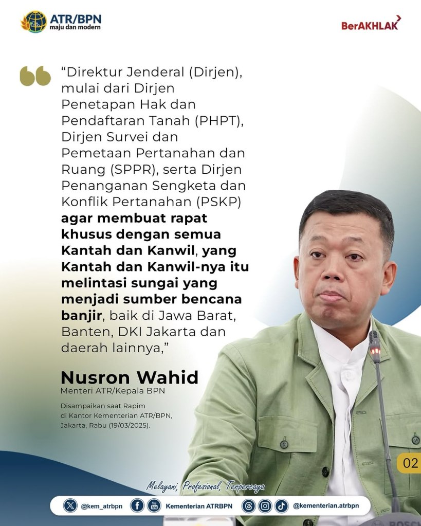 Kementerian Agraria dan Tata Ruang/Badan Pertanahan Nasional (ATR/BPN) menindaklanjuti hasil pertemuan antara Menteri Nusron Wahid dengan Menteri Koordinator Bidang Pangan, Zulkifli Hasan, yang berlangsung Senin (19/03/2025) lalu. Menteri Nusron Wahid menginstruksikan kepada jajarannya untuk berkoordinasi dengan pemerintah daerah (Pemda) terkait penetapan Lahan Pertanian Pangan Berkelanjutan (LP2B).