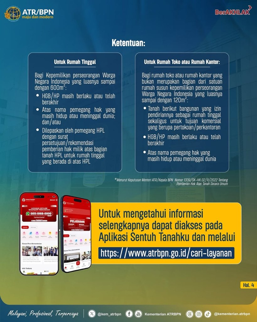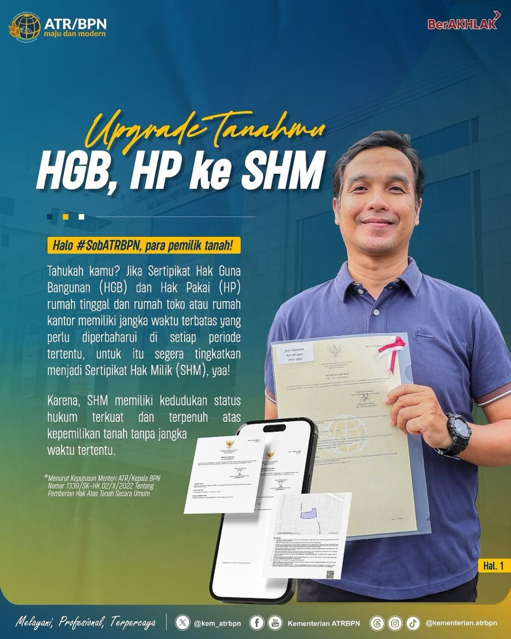 Halo #SobATRBPN, tahukah kamu bahwa Sertipikat Hak Guna Bangunan (HGB) dan Hak Pakai (HP) memiliki jangka waktu terbatas yang perlu diperbaharui di setiap periode tertentu?