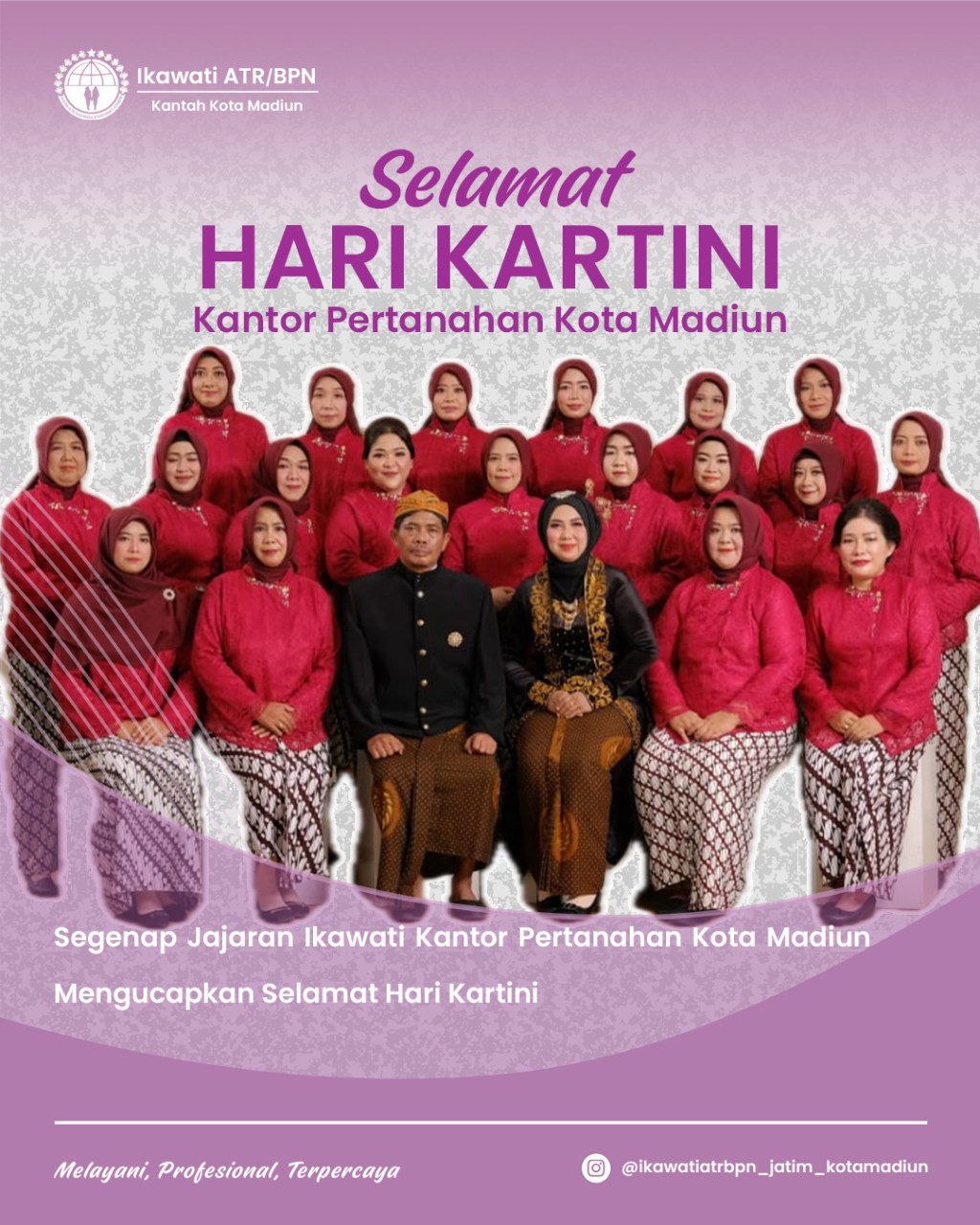 Kepala Kantor Pertanahan Kota Madiun, Bapak Triawan Saleh, S.T., M.Si. dan Seluruh Jajaran Kantor Pertanahan Kota Madiun mengucapkan selamat memperingati Hari Kartini.