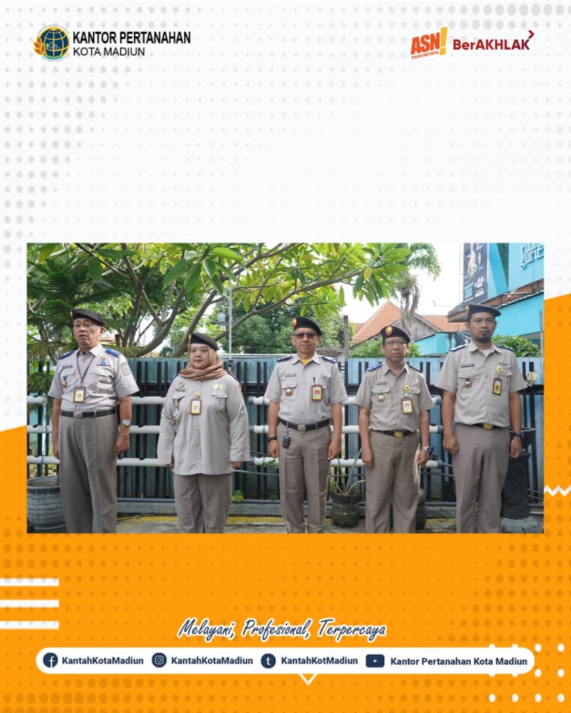Hari ini Selasa (22/04/2025) Kantor Pertanahan Kota Madiun melaksanakan Apel Pagi yang bertempat di Halaman Depan Kantor Pertanahan Kota Madiun. Yang bertindak sebagai Pembina Upacara, Kepala Kantor Pertanahan Kota Madiun, Bapak Triawan Saleh, S.T., M.Si. dan diikuti oleh seluruh Pejabat Pengawas dan Jajaran Kantor Pertanahan Kota Madiun.