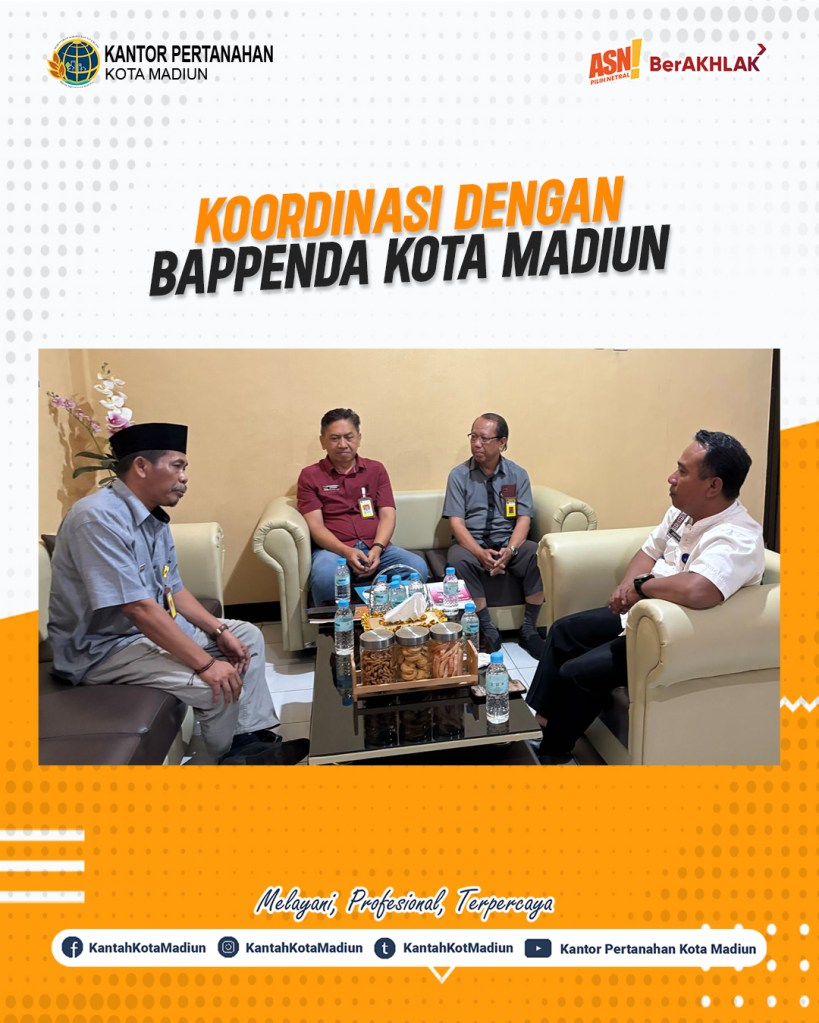 Halo #SobATRBPN, Hari ini Jumat (02/05/2025) mengawali awal Bulan Mei, Kantor Pertanahan Kota Madiun melaksanakan Koordinasi dengan Badan Pendapatan Daerah Kota Madiun.