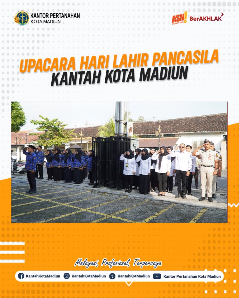 Segenap jajaran Kantor Pertanahan Kota Madiun mengucapkan Selamat Memperingati Hari Lahir Pancasila, 1 Juni 2025.
