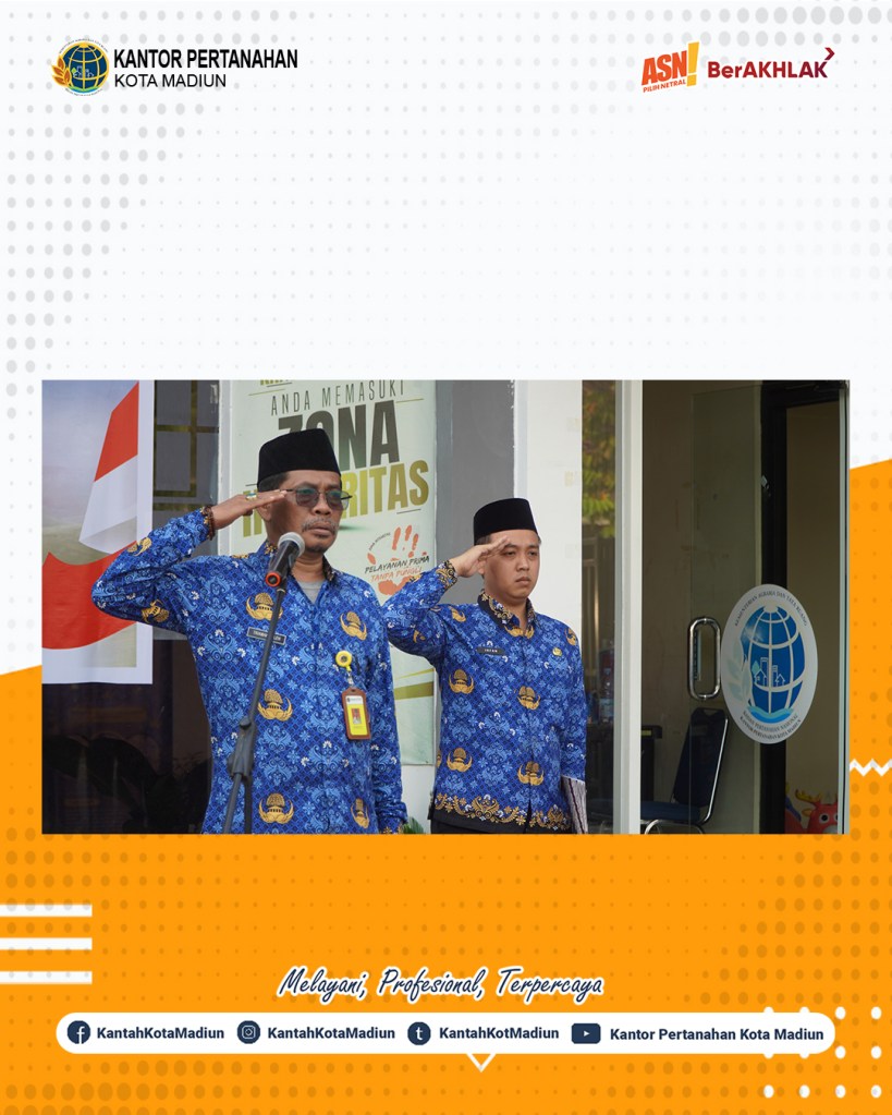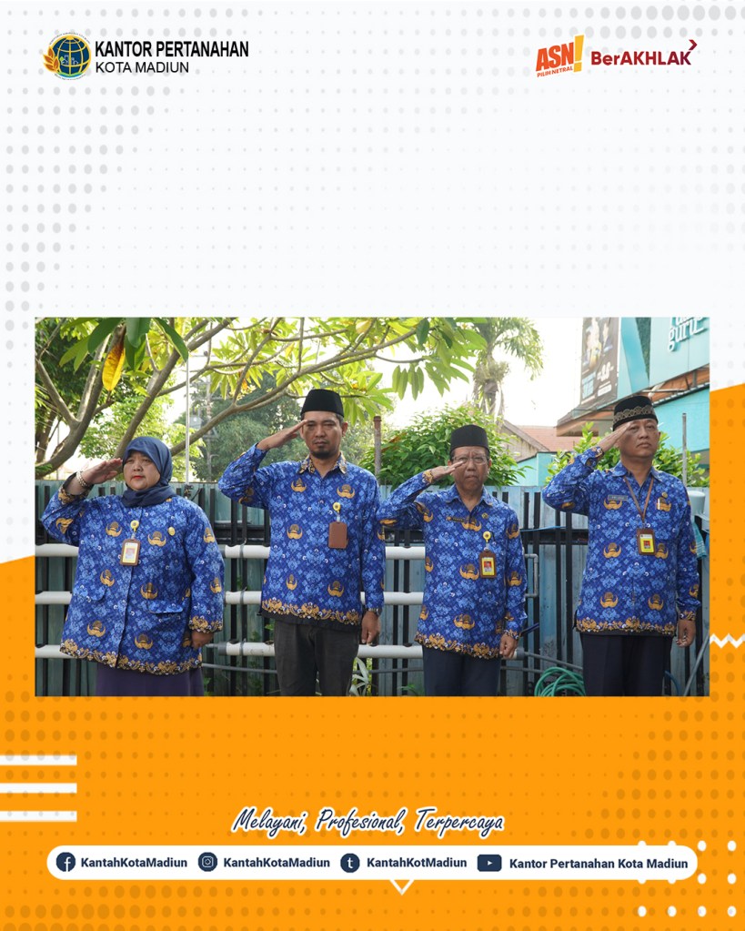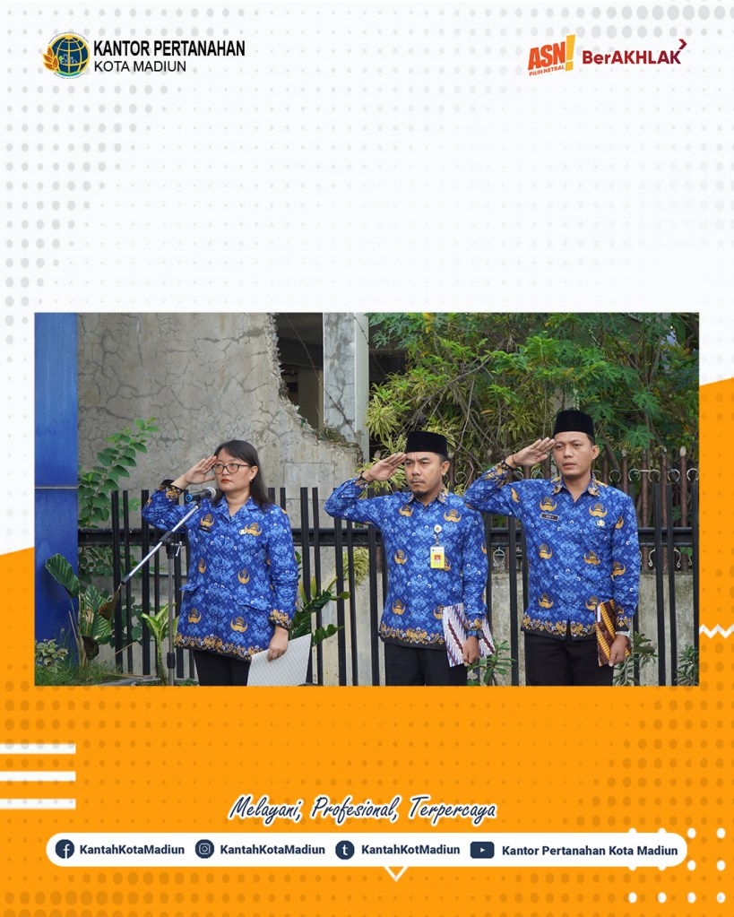 Halo SobATRBPN, Hari ini Senin (02/06/2025) Kantor Pertanahan Kota Madiun melaksanakan Upacara Memperingati Hari Lahir Pancasila, yang bertindak sepagai Inspektur Upacara, Kepala Kantor Pertanahan Kota Madiun, Bapak Triawan Saleh, S.T., M.Si. dan diikuti oleh Seluruh Jajaran Kantor Pertanahan Kota Madiun.