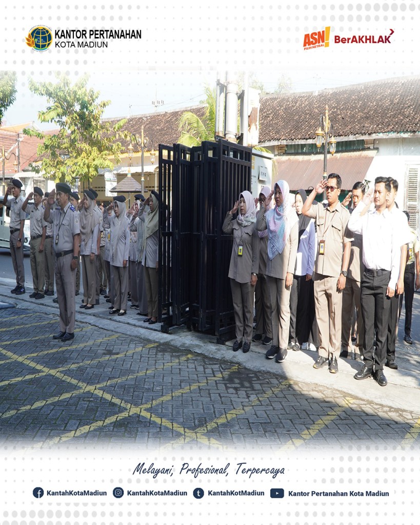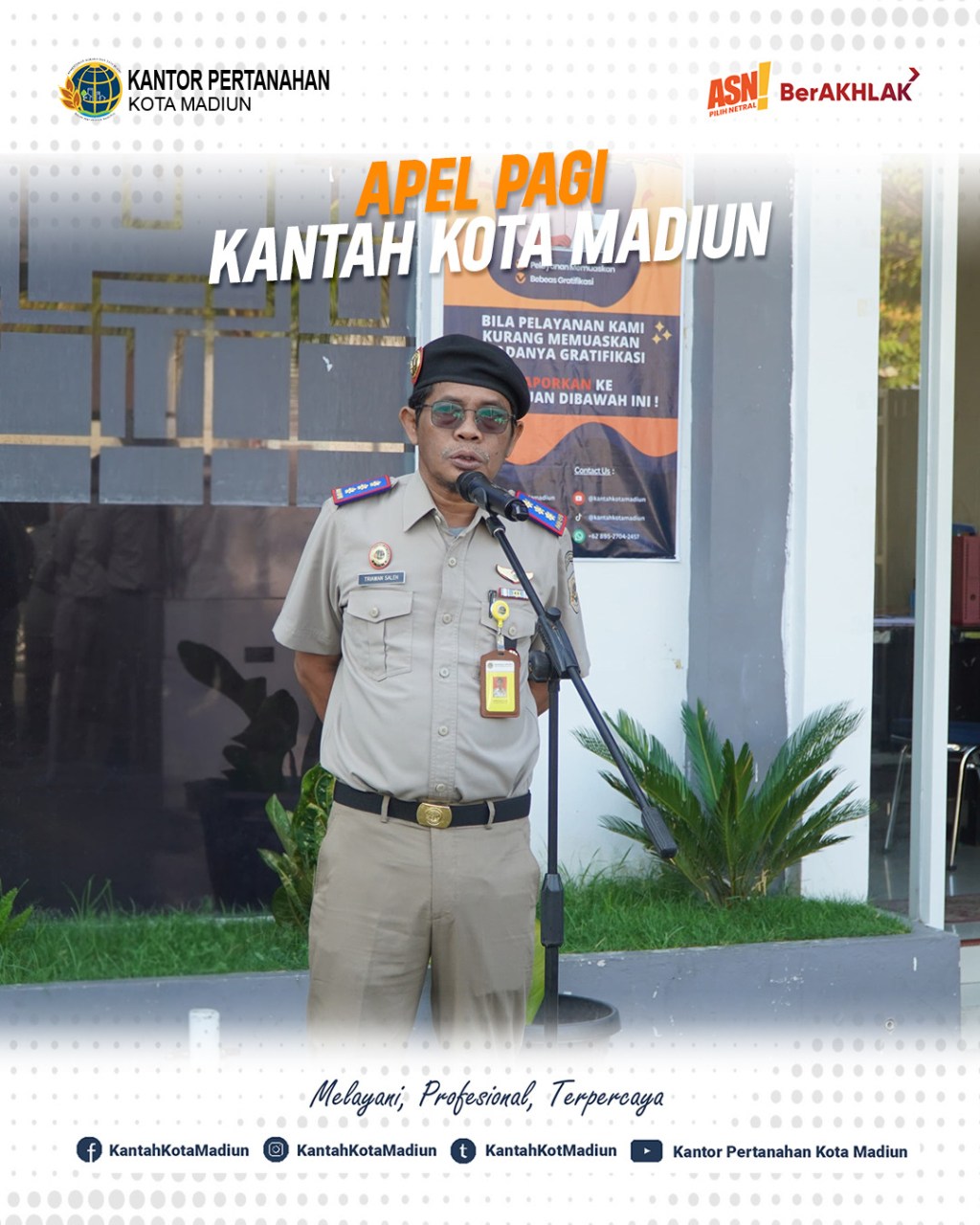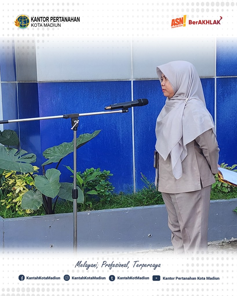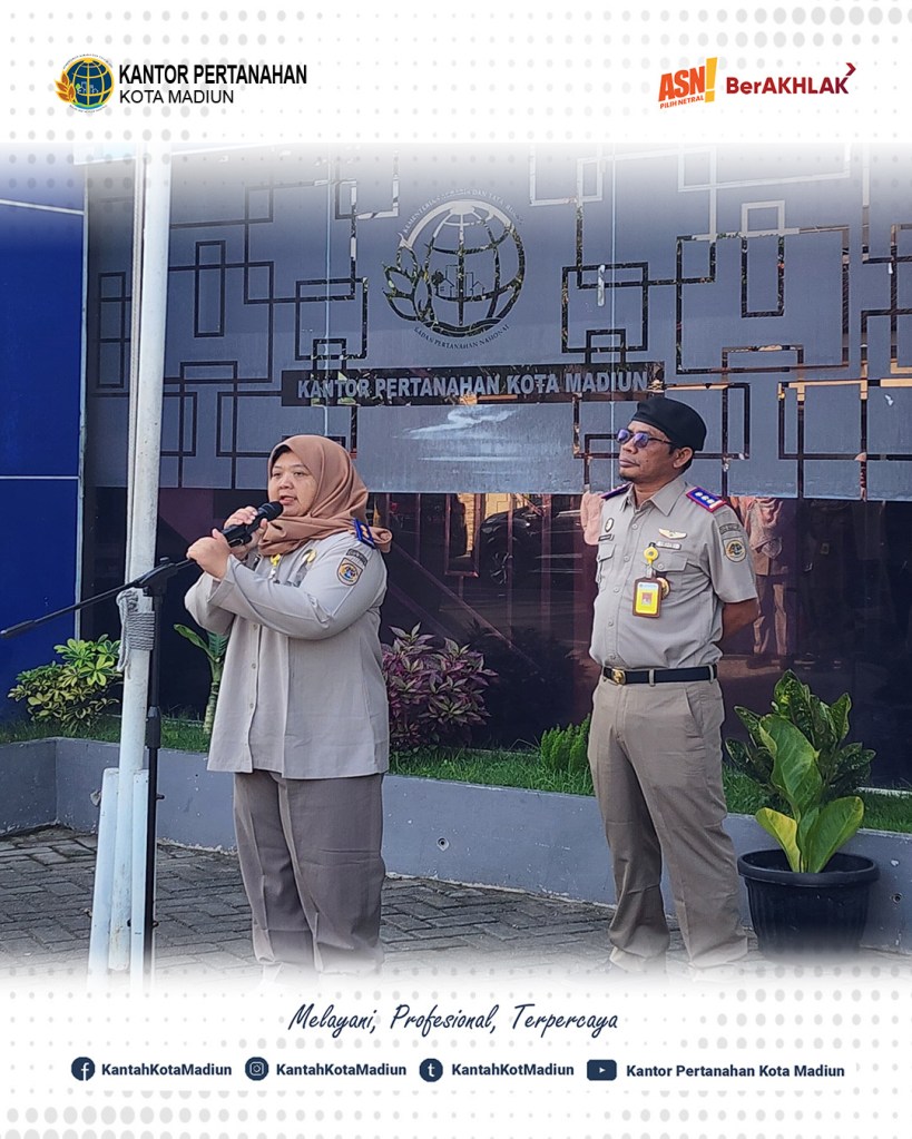 Halo #SobATRBPN, Hari ini Selasa (01/07/2025) mengawali Hari di Bulan Juli, Kantor Pertanahan Kota Madiun melaksanakan Apel Pagi yang bertempat di Halaman Depan Kantor Pertanahan Kota Madiun. Yang bertindak sebagai Pembina Upacara, Kepala Kantor Pertanahan Kota Madiun, Bapak Triawan Saleh, S.T., M.Si. dan diikuti oleh seluruh Pejabat Pengawas dan Jajaran Kantor Pertanahan Kota Madiun.