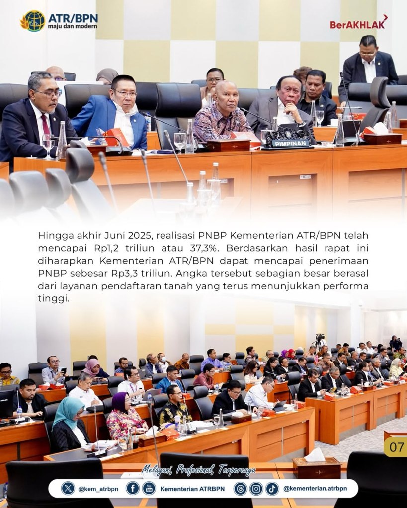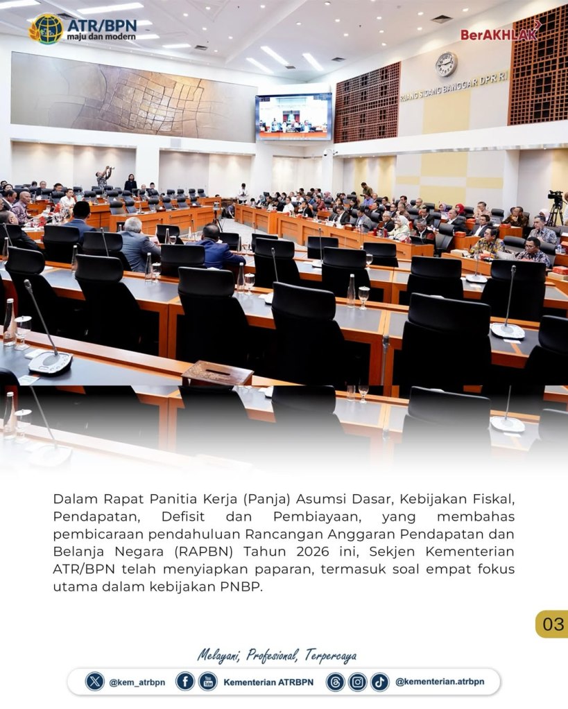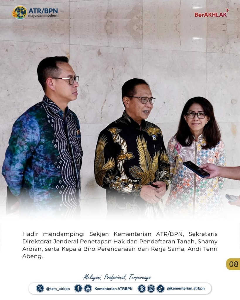 “Insyaallah, untuk mencapai itu harus ada (kebijakan, red), karena kami harus menyelesaikan apa yang menjadi target di tahun ini, untuk bisa mencapai apa yang ditargetkan di tahun 2026,” ujar Pudji Prasetijanto Hadi usai mengikuti rapat bersama Badan Anggaran DPR RI, dengan didampingi oleh Sekretaris Direktorat Jenderal Penetapan Hak dan Pendaftaran Tanah, Shamy Ardian, serta Kepala Biro Perencanaan dan Kerja Sama, Andi Tenri Abeng, Selasa (08/07/2025).