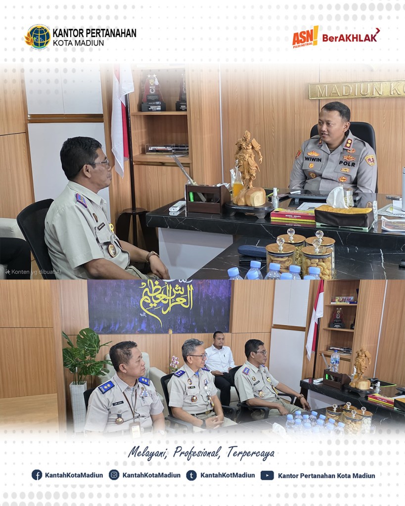 Halo #sobatATRBPN, Hari ini Senin (21/07/2025) Kepala Kantor Pertanahan Kota Madiun, Bapak Triawan Saleh, S.T., M.Si. Bersama dengan Pejabat Pengawas Kantor Pertanahan Kota Madiun melaksanakan Kunjungan Kerja ke Polres Madiun Kota.