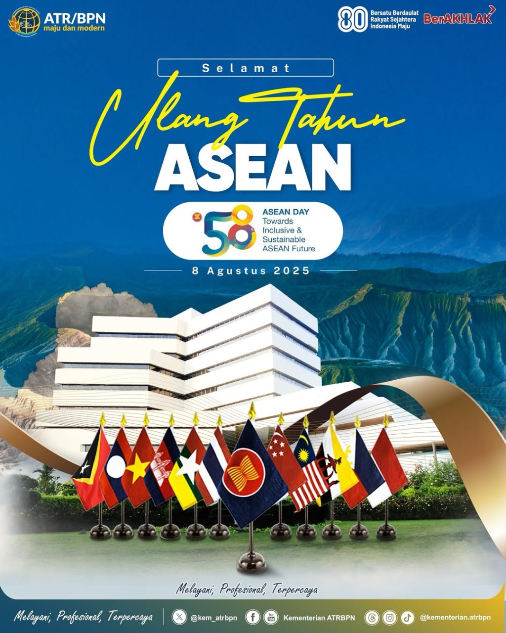 Segenap jajaran Kementerian ATR/BPN mengucapkan Selamat Ulang Tahun ke-58 ASEAN.