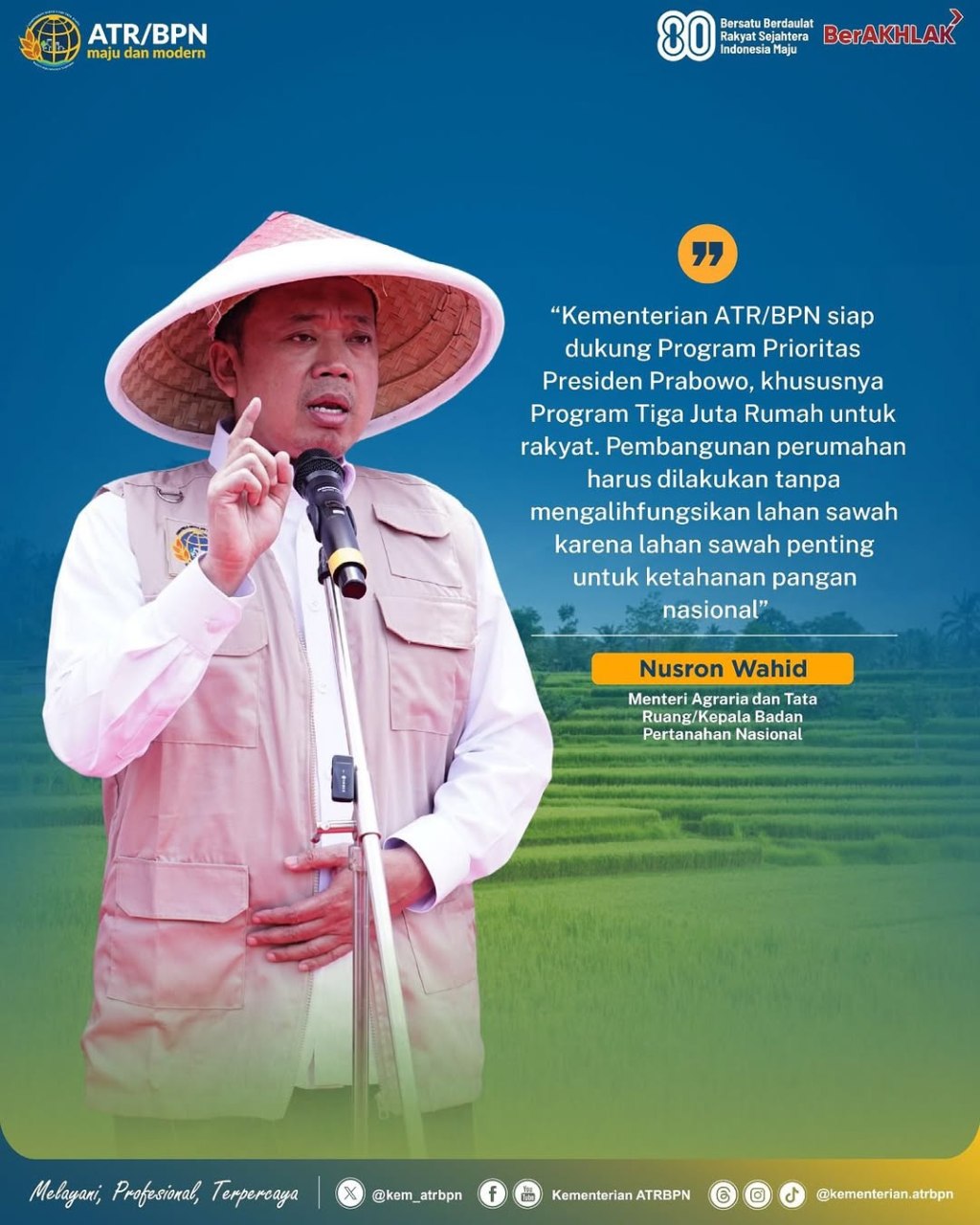 Kementerian ATR/BPN turut mendukung Program Tiga Juta Rumah yang merupakan salah satu program strategis dari Presiden Prabowo Subianto.