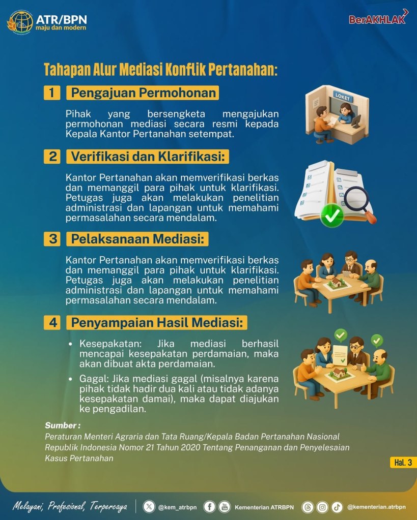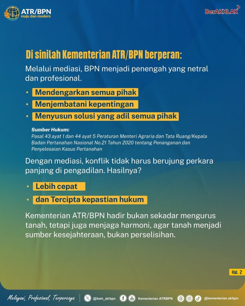 Nah, Kementerian ATR/BPN berperan melalui mediasi menjadi penengah yang netral dan profesional.