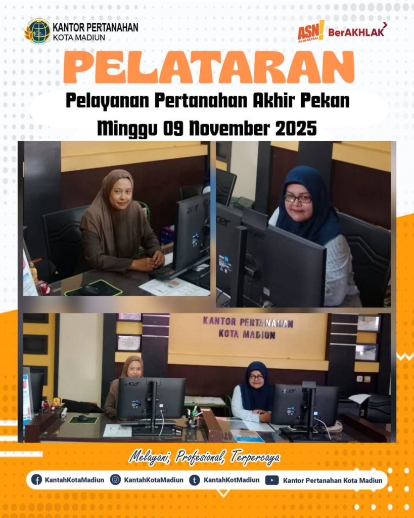 Halo #SobATRBPN, Palayanan Pertanahan Akhir Pekan (PELATARAN) di Loket Kantor Pertanahan Kota Madiun.