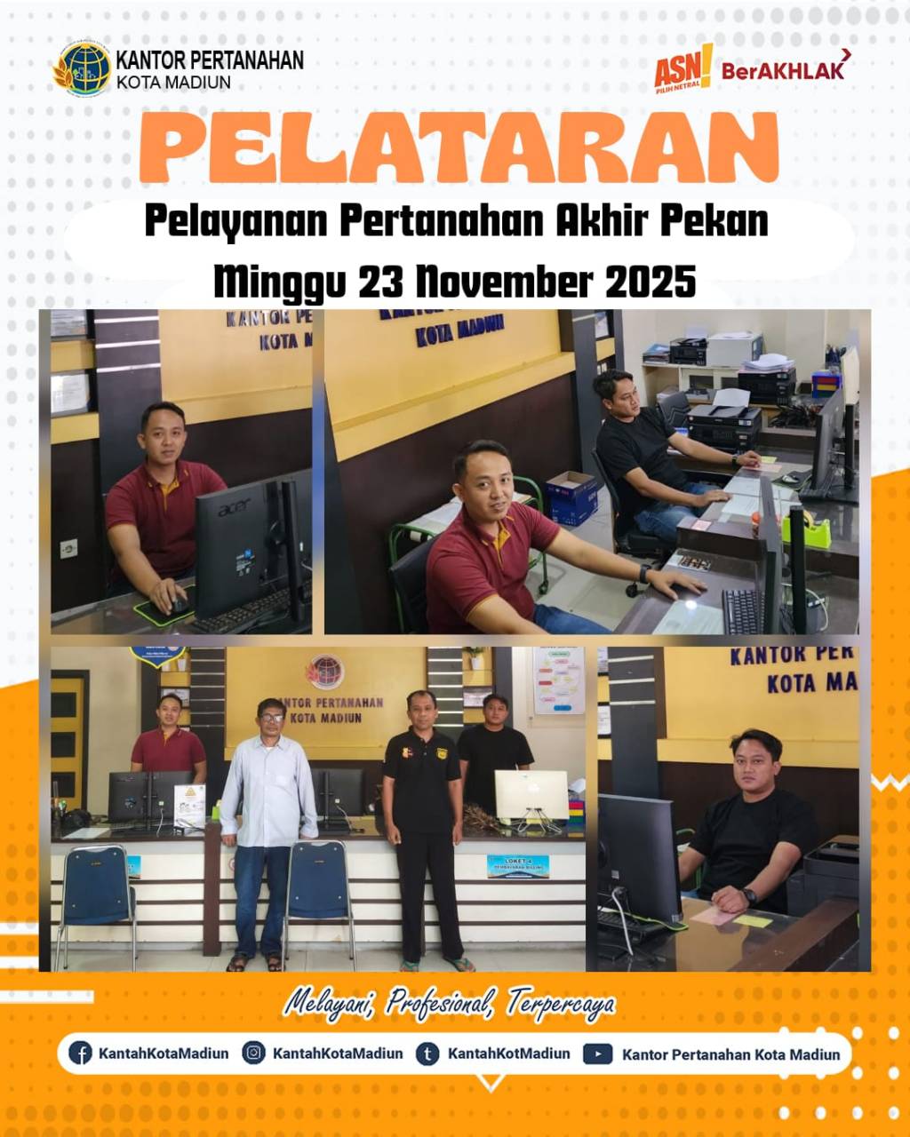Halo #SobATRBPN, Palayanan Pertanahan Akhir Pekan (PELATARAN) di Loket Kantor Pertanahan Kota Madiun.