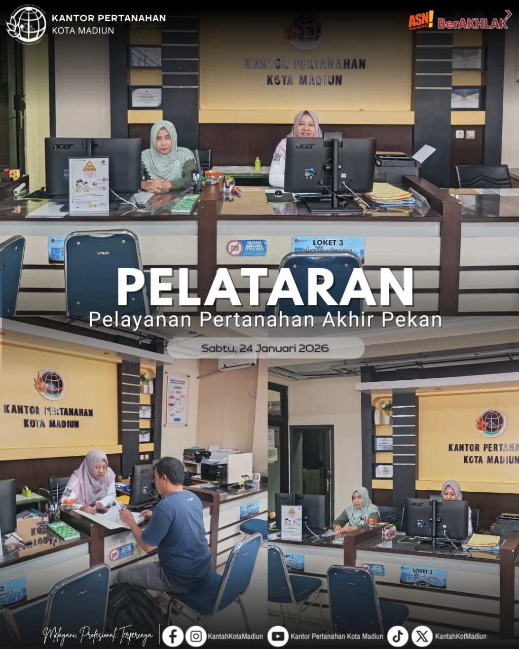 Halo #SobATRBPN, Pelayanan Pertanahan Akhir Pekan (PELATARAN) di Loket Kantor Pertanahan Kota Madiun.