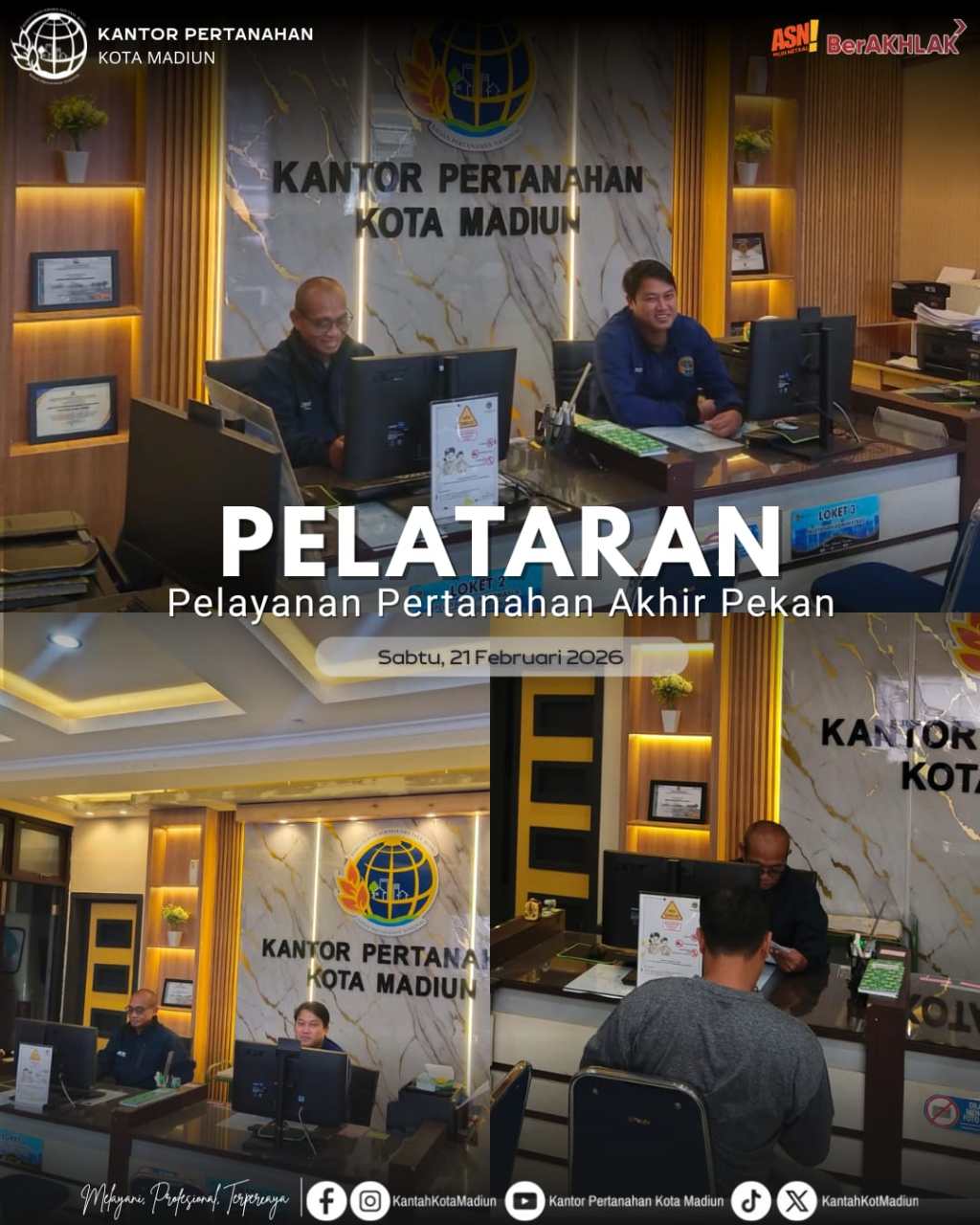 Halo #SobATRBPN, Pelayanan Pertanahan Akhir Pekan (PELATARAN) di Loket Kantor Pertanahan Kota Madiun.