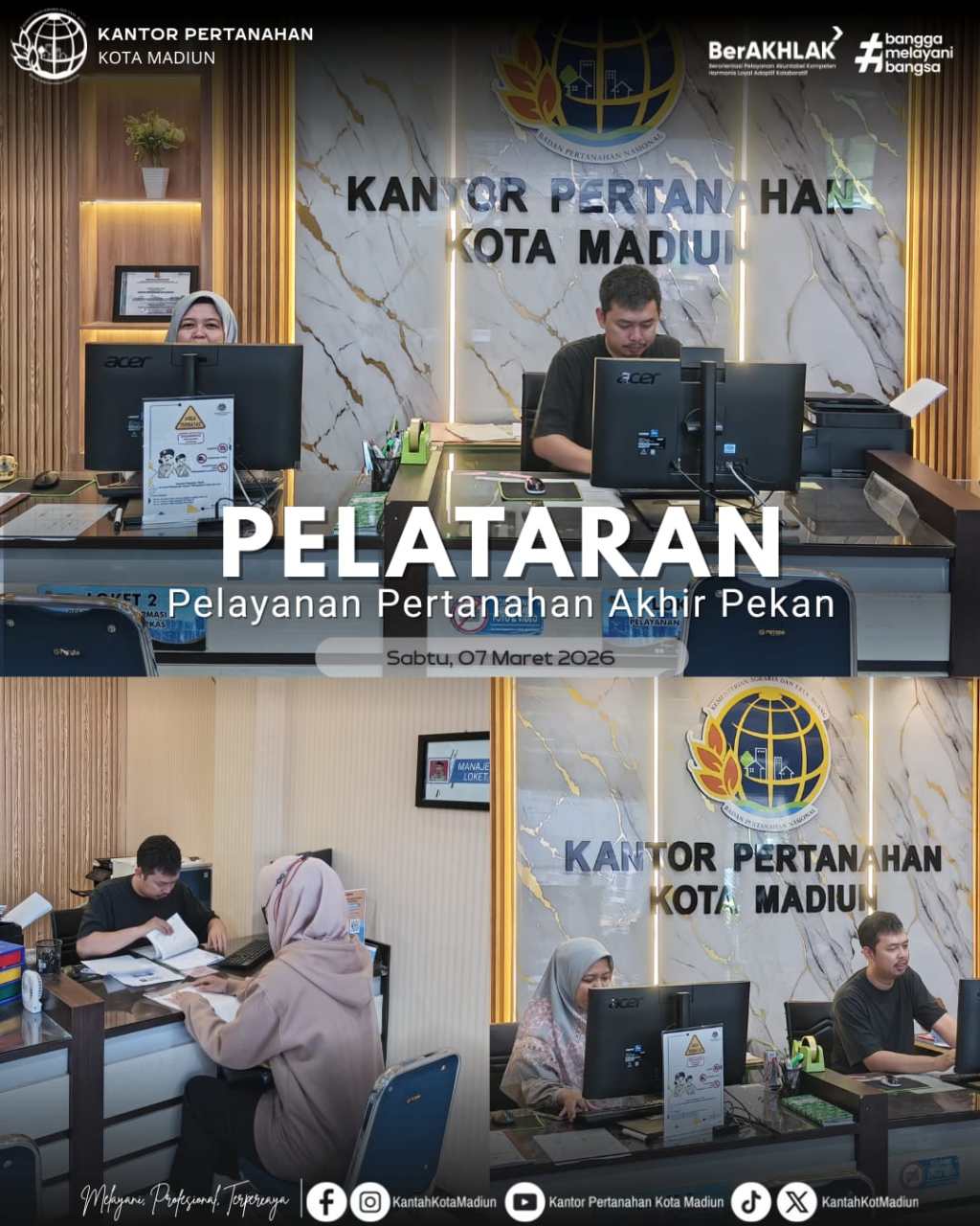 Halo #SobATRBPN, Pelayanan Pertanahan Akhir Pekan (PELATARAN) di Loket Kantor Pertanahan Kota Madiun.