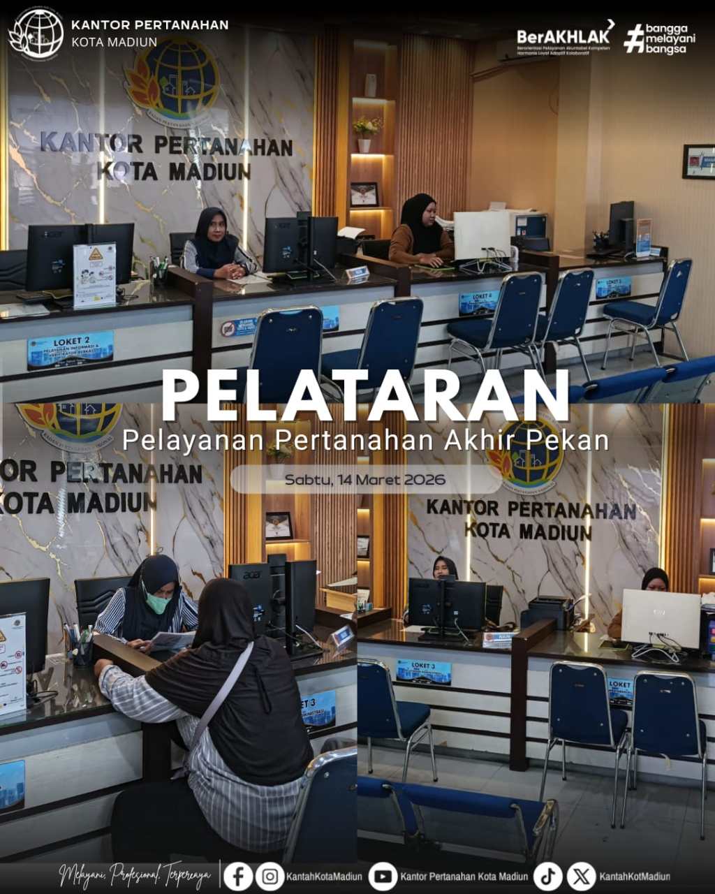 Halo #SobATRBPN, Pelayanan Pertanahan Akhir Pekan (PELATARAN) di Loket Kantor Pertanahan Kota Madiun.