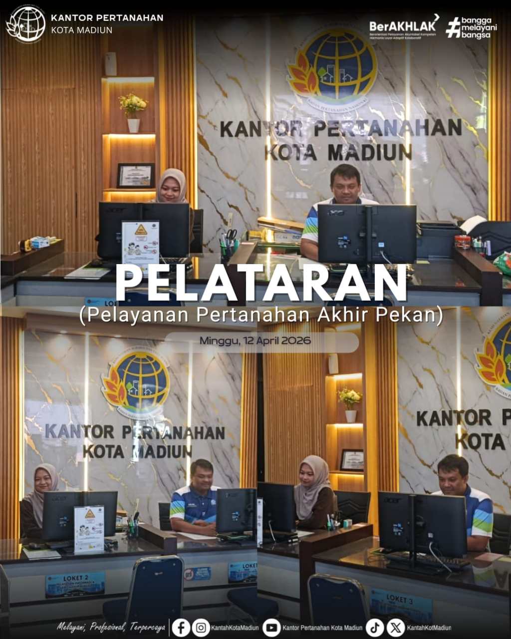 Halo #SobATRBPN, Pelayanan Pertanahan Akhir Pekan (PELATARAN) di Loket Kantor Pertanahan Kota Madiun.
