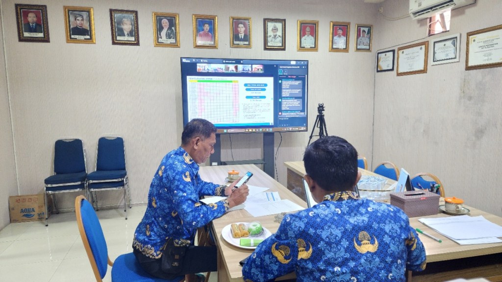 Hadir mengikuti jalannya evaluasi dari ruang rapat lantai 1, Kepala Kantor Pertanahan (Kantah) Kota Madiun didampingi oleh Kepala Seksi Penetapan Hak dan Pendaftaran.